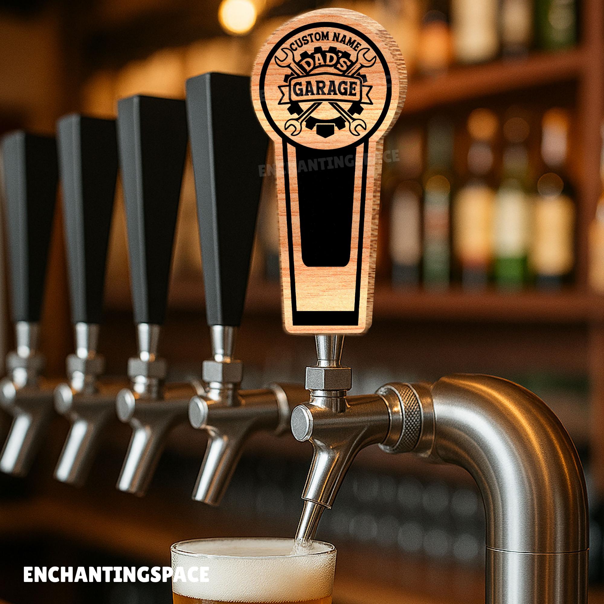 Custom Dad's Garage Beer Tap Handle, Handcrafted Wood Tap Handle, C...