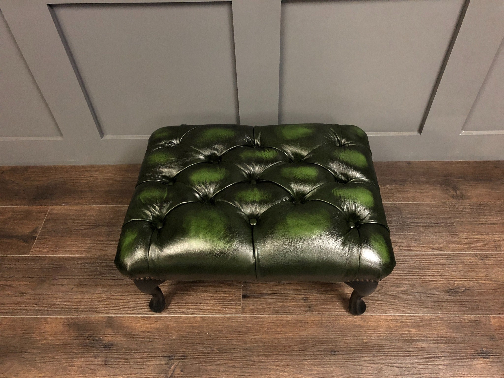 Handmade Chesterfield Queen Anne Footstool Leather Antique Emerald ...