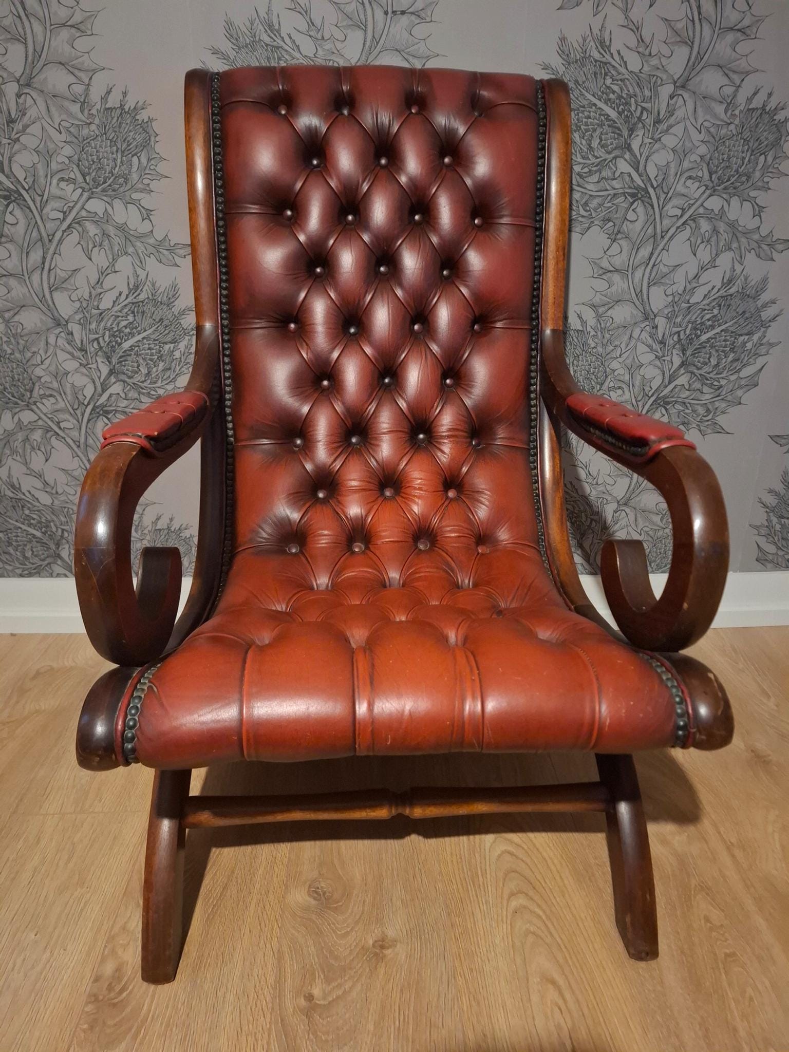 A vintage leather York chesterfield slipper chair. The leather is in beautiful condition, cleaned an...