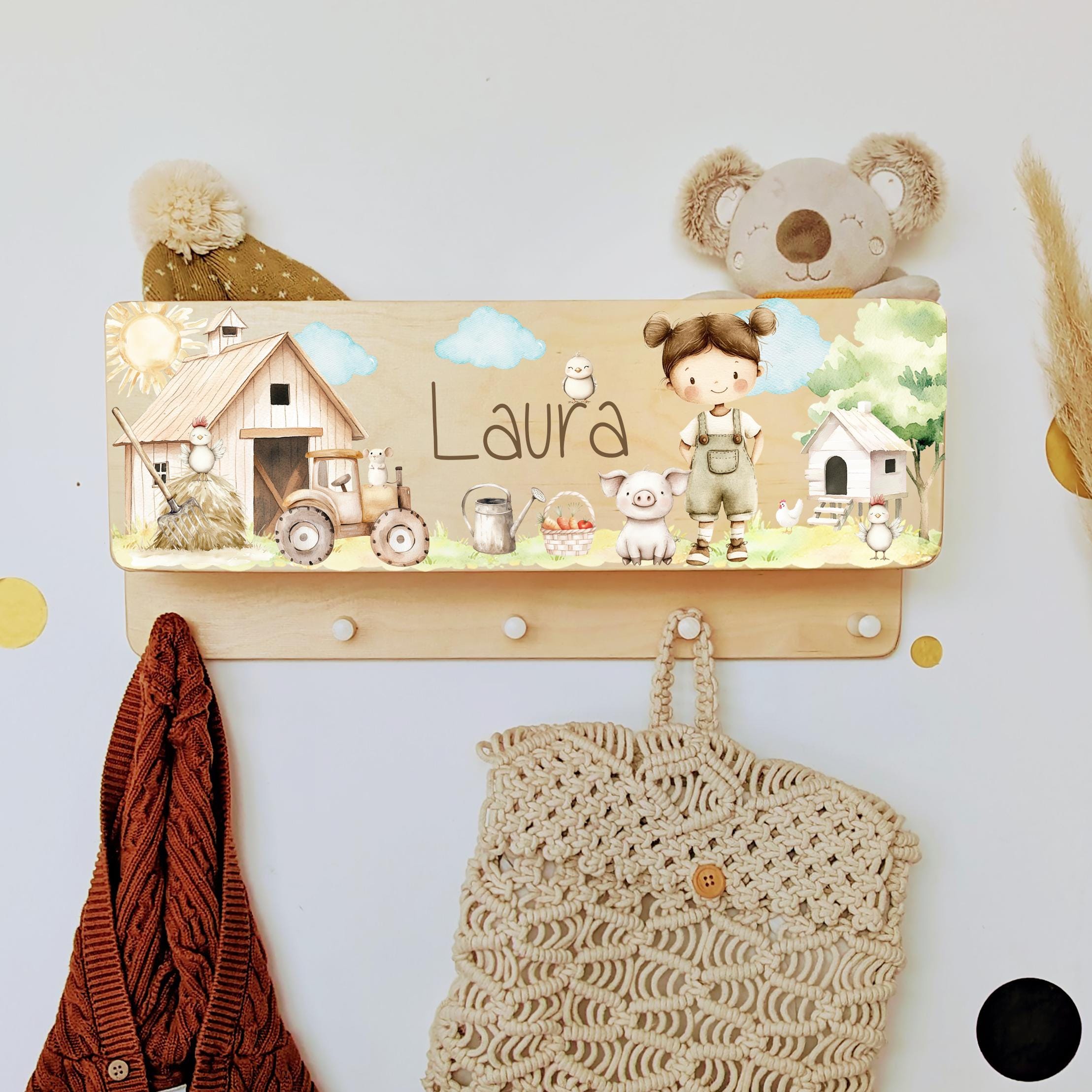 Children's wardrobe with storage Children's room various farm motifs with children in different hair...