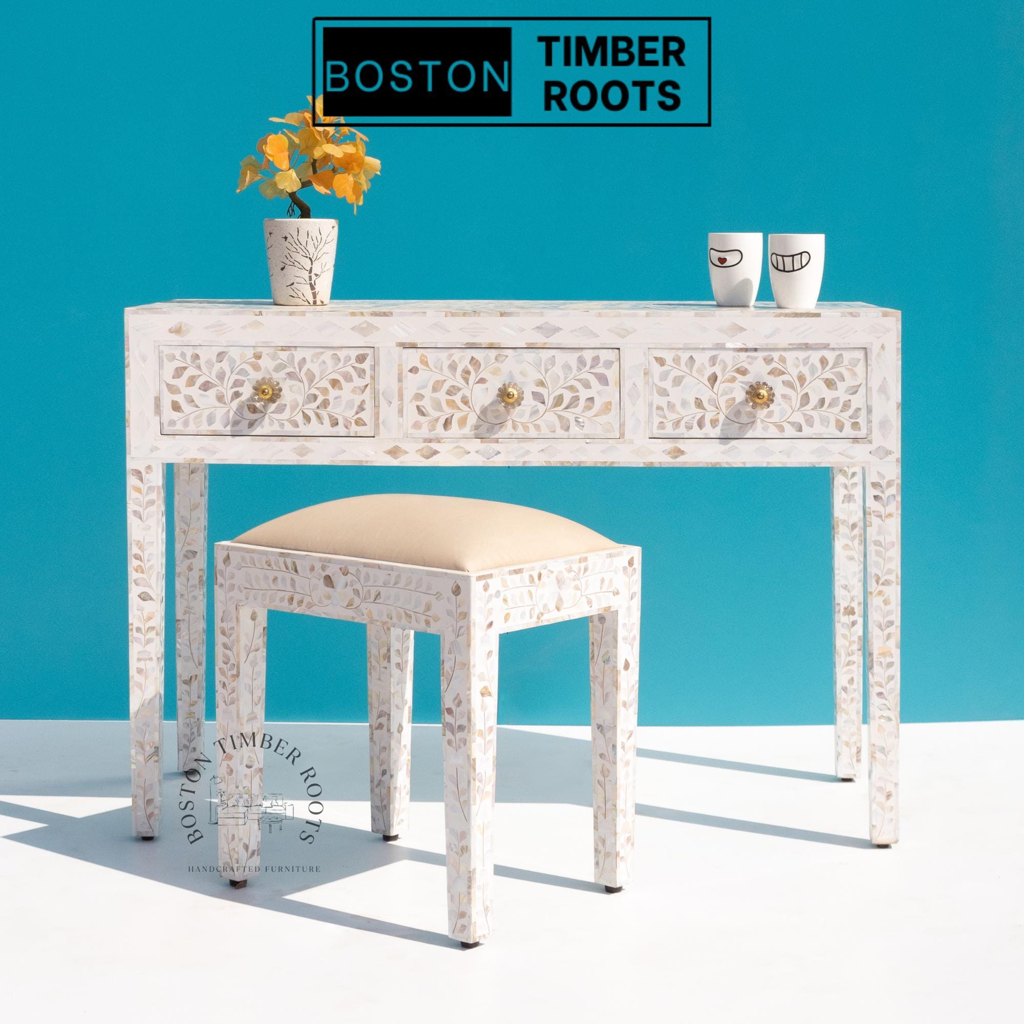 Elevate your daily routine with this handmade Mother of Pearl Inlay Makeup Table -- a stunning fusio...