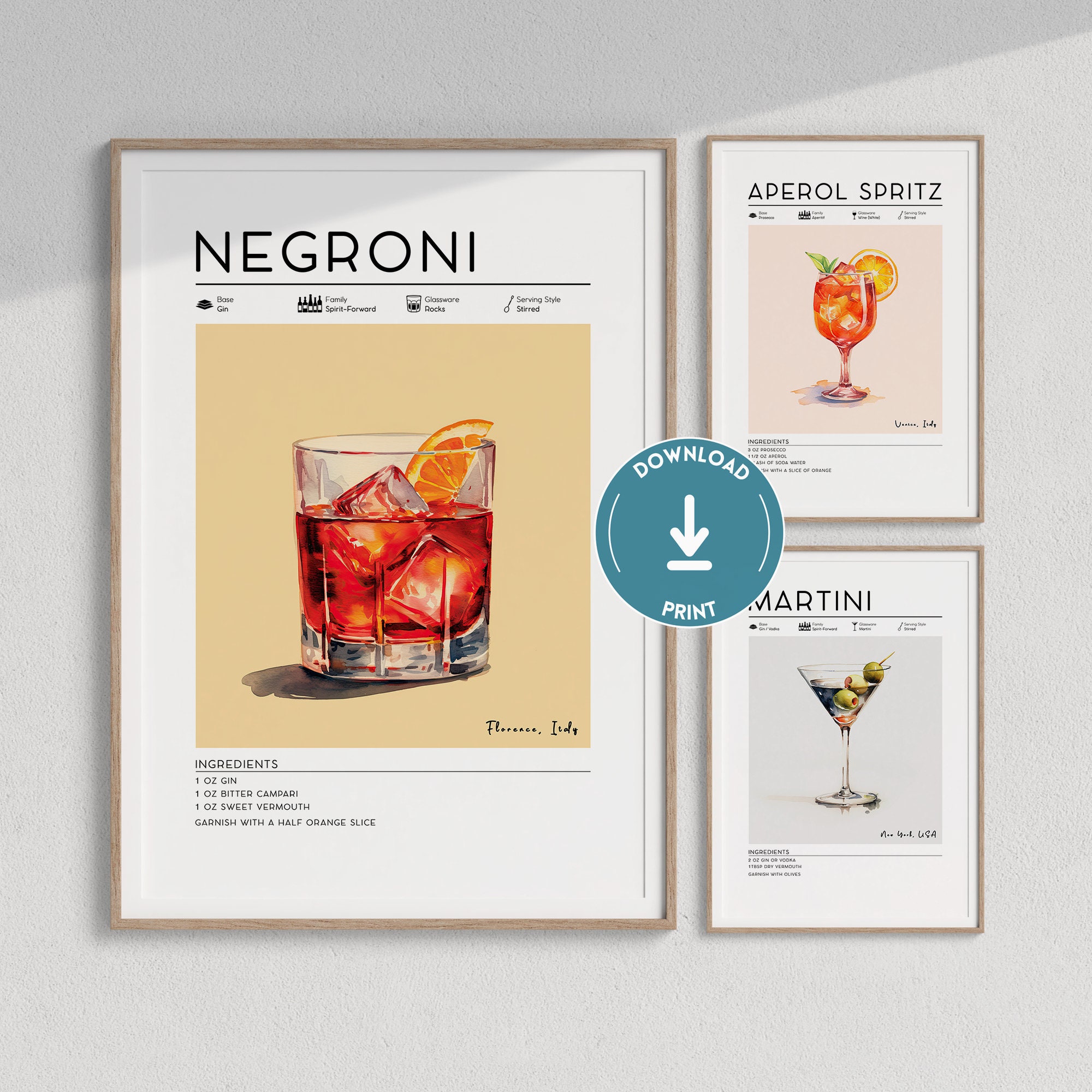 Set of 3 Cocktail Prints | Aperol Spritz, Negroni, Martini, Retro C...