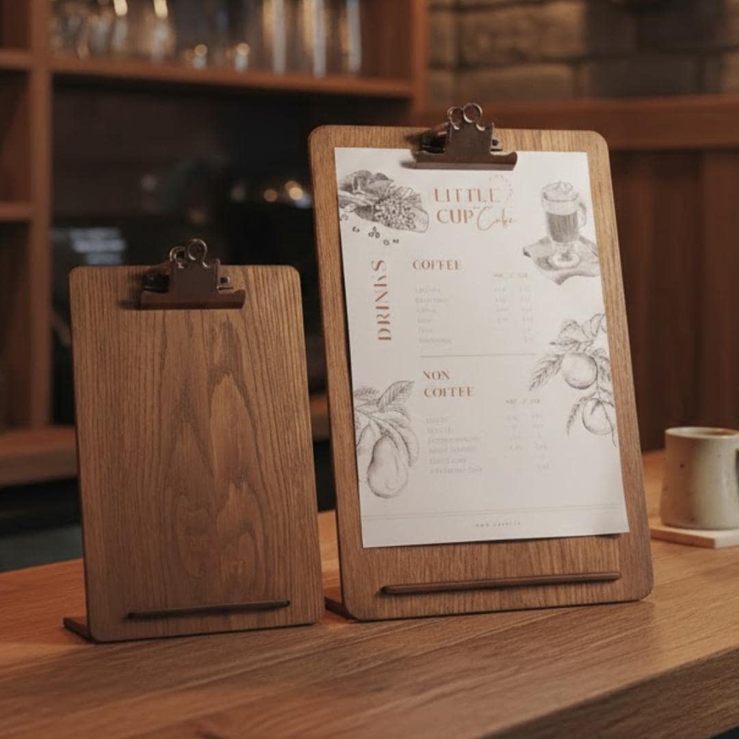 "Professional Freestanding Oak Menu Clipboards - Antique Bronze Finish Clip Elevate your tablet...