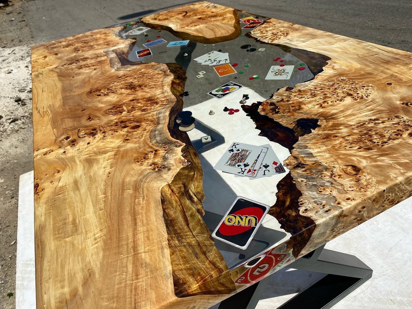 Custom Poplar Wood Clear Transparent Epoxy Table- Dining table- Pok...