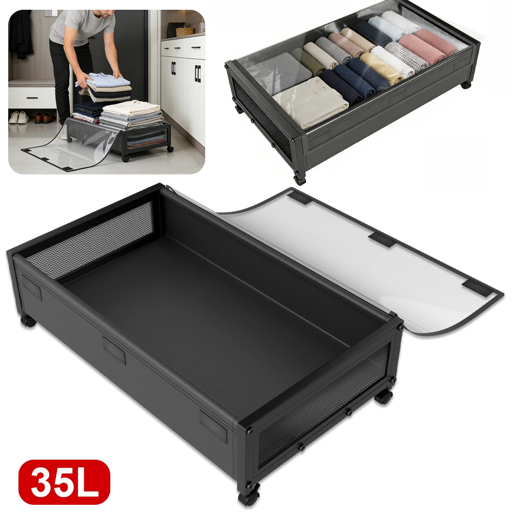 35L Under-bed storage box Underbed Lockers with Wheels and Lids-Space saving Pull - out Storage Cont...