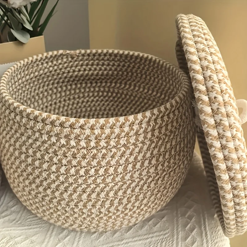 Bohemian Storage Basket with Lid | Self-Supporting Organizer for Wa...
