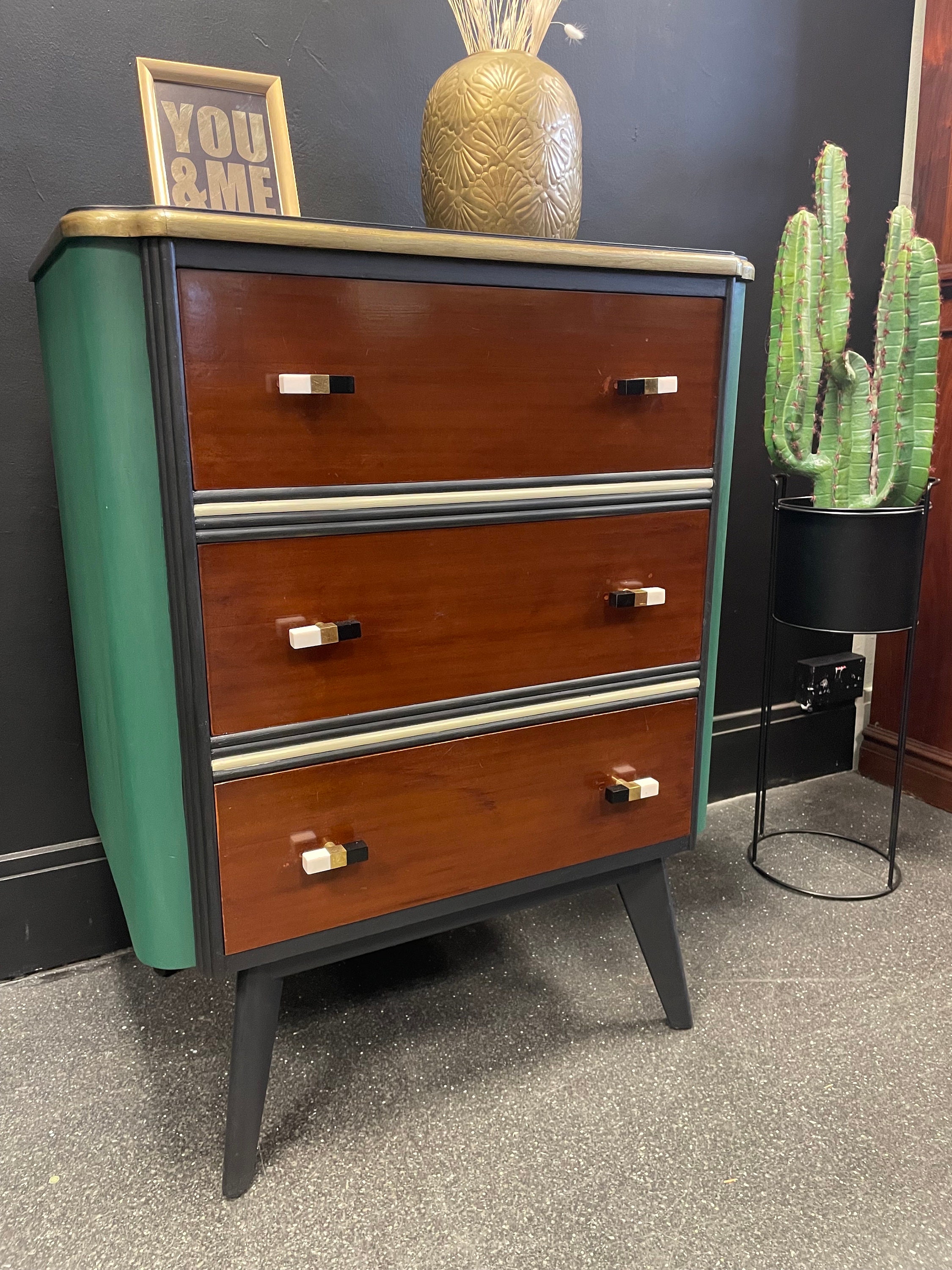 Art Deco Chest of Drawers: (Sold) Coal Black, Fern & Cream Holl...