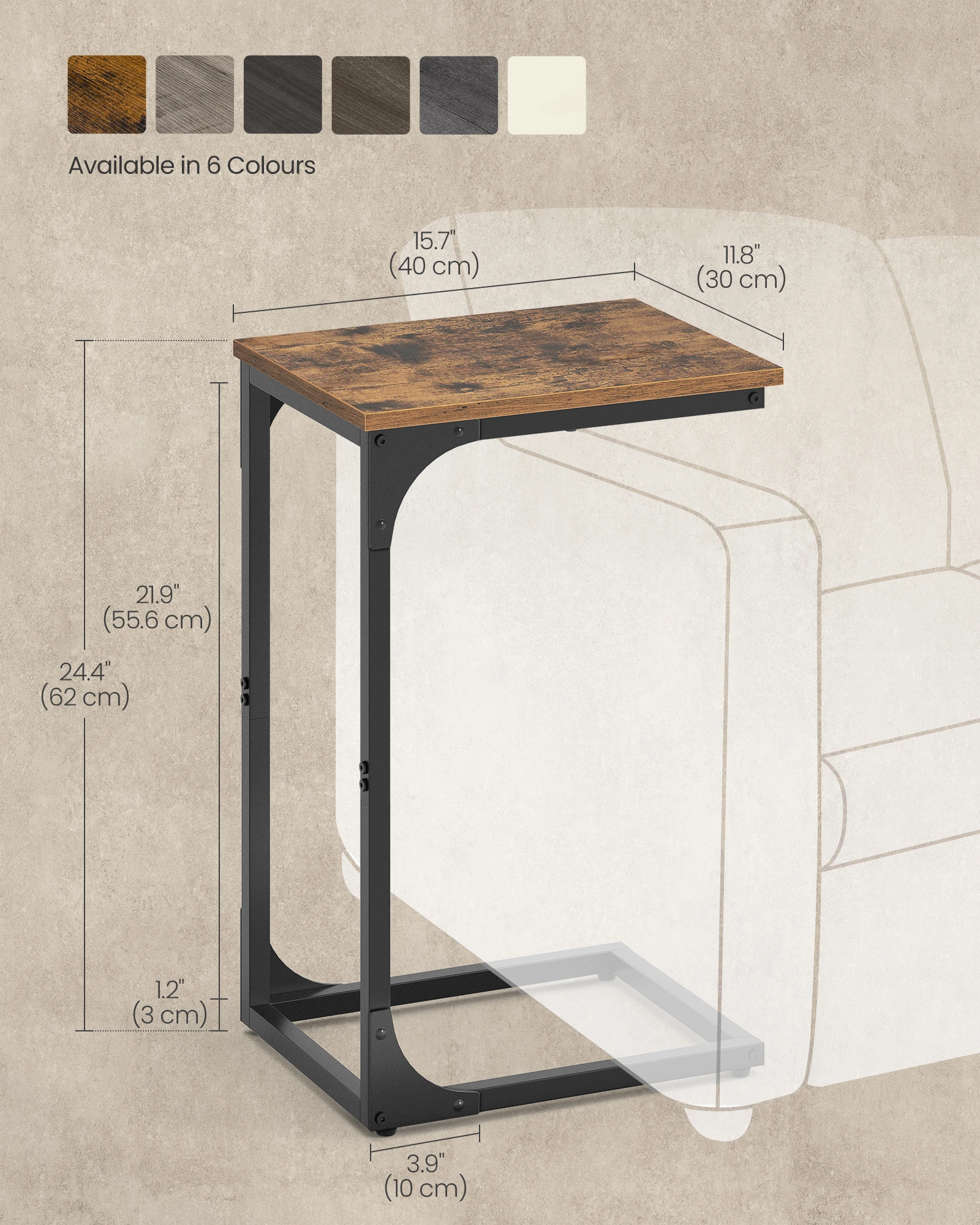 VASAGLE C-Shaped Side Table, Bedside Table, Sofa Side Table, Coffee Table, with Metal Frame, Industr...