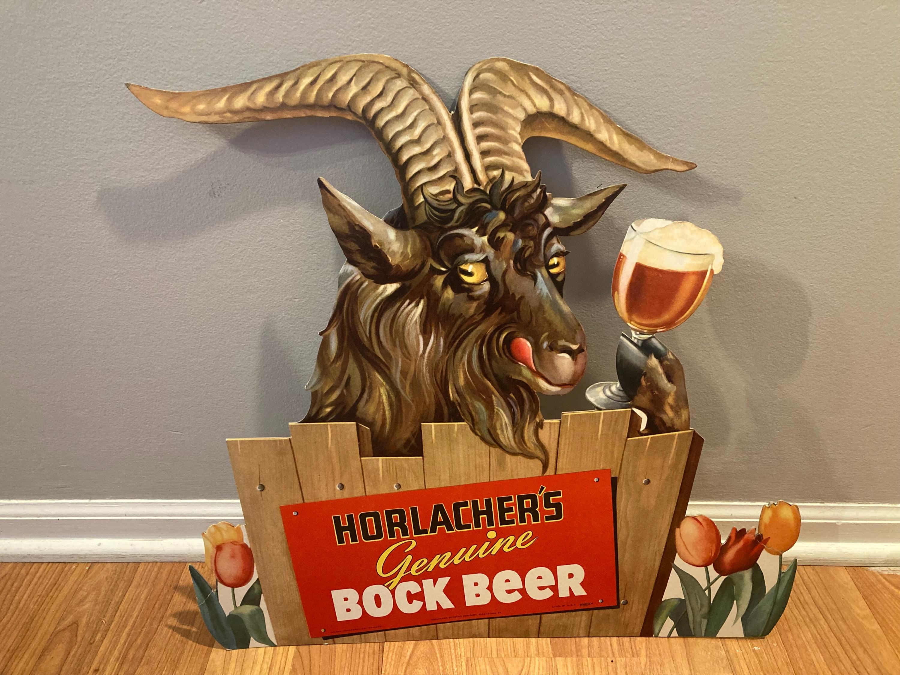 "For your consideration is this Horlacher's Bock Beer advertising bar counter display sign. New...