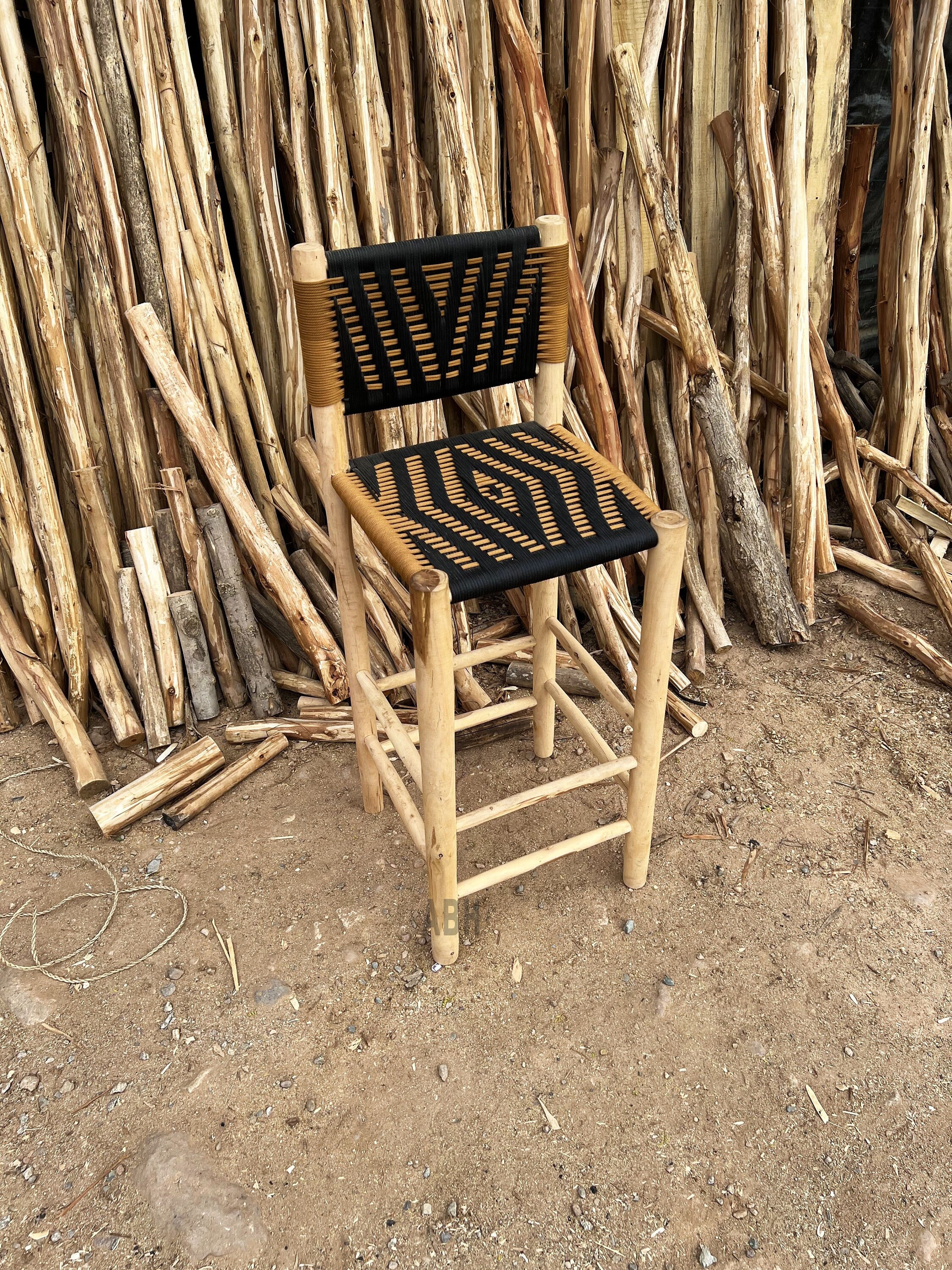 Moroccan Macrame bar stool, handmade wood bar stools, bar stool wit...