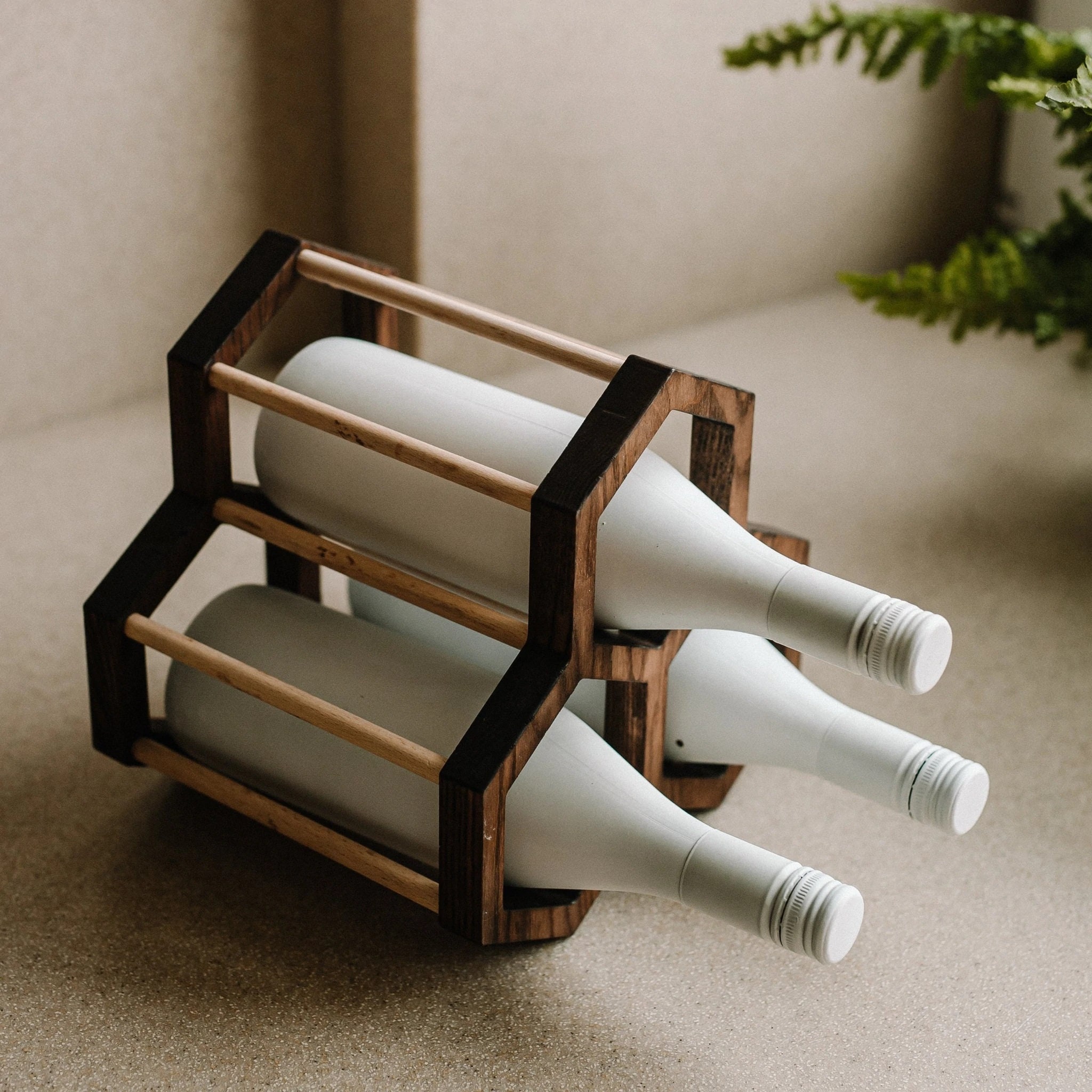 Meet the 2-Bottle Edgy Wine Rack. This small, yet sturdy modern design helps with home organization....