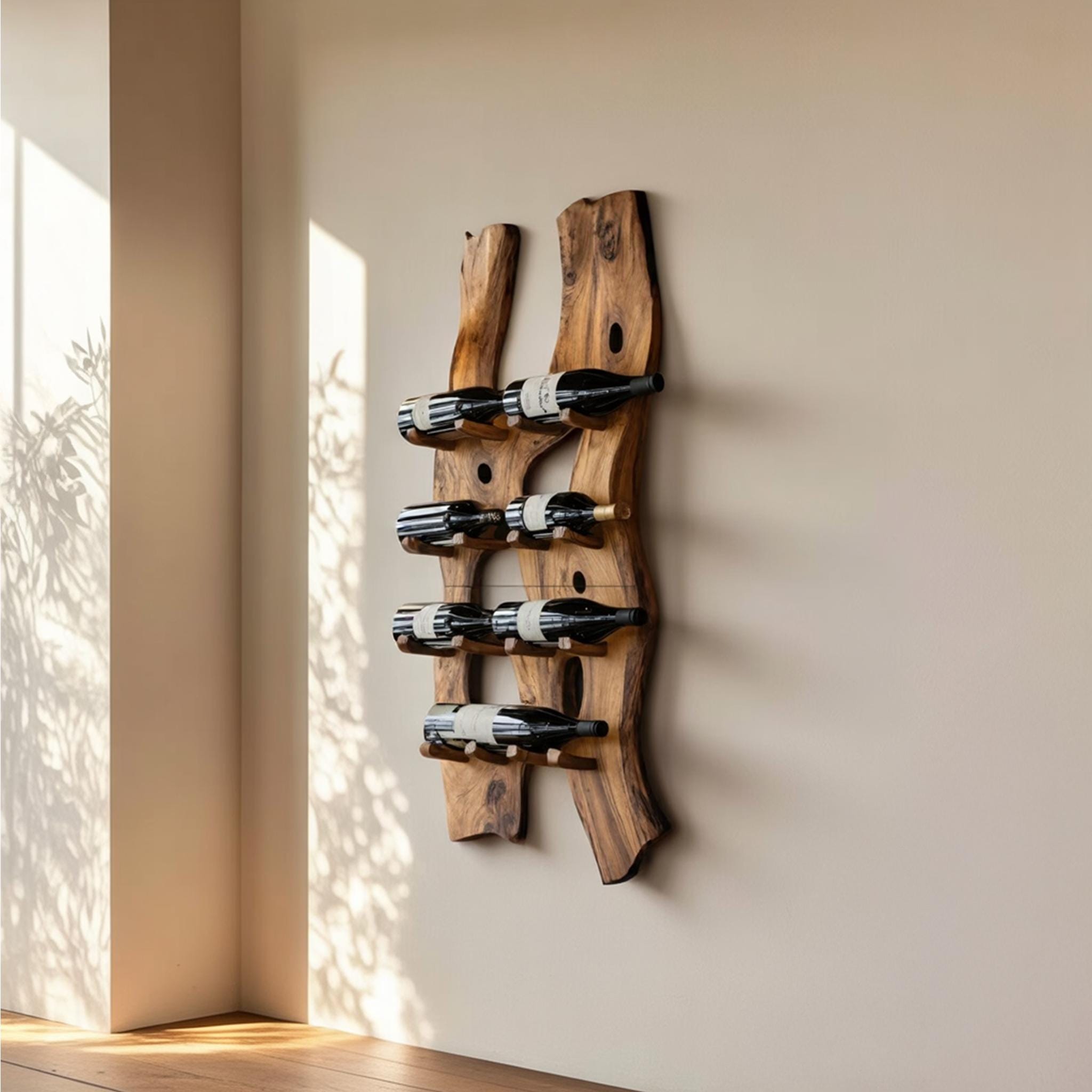 Handcrafted Rustic Walnut Wine Rack: Countertop Bottle Holder