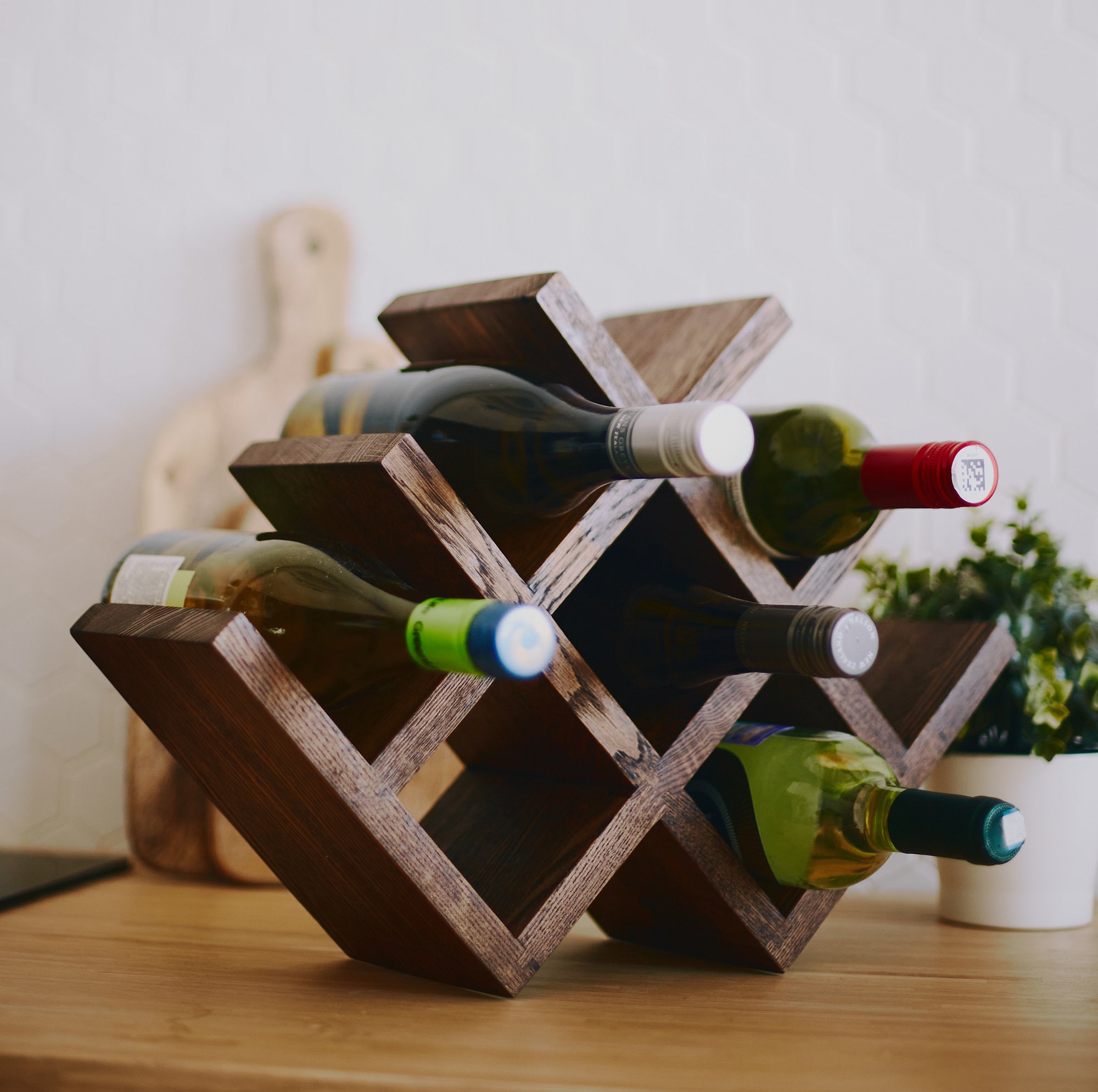 Wooden Honeycomb Wine Rack for Housewarming Gift, Rustic Countertop...