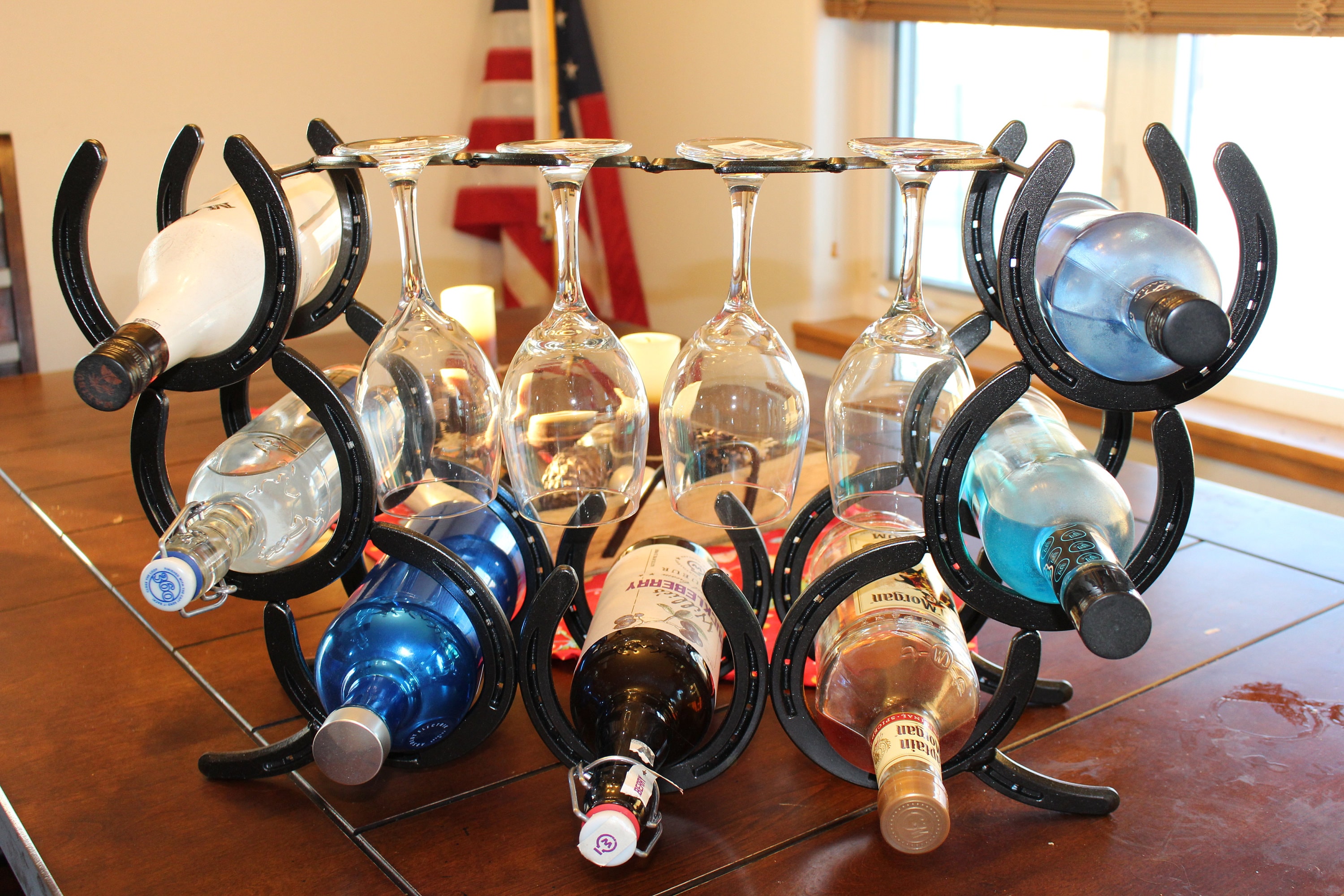 Horseshoe wine rack made of new horseshoes fully welded and powder coated in a professional finish t...