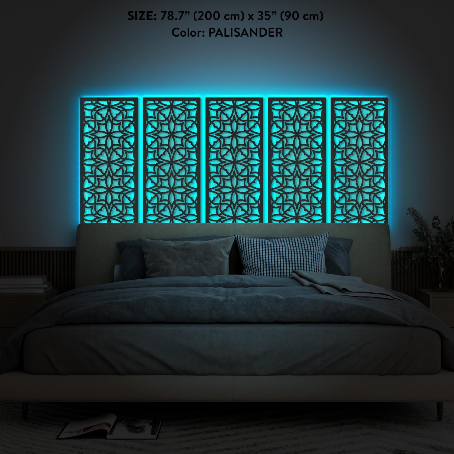 Headboard with lights, Mandala led wall art, Arabic wood headboard ...