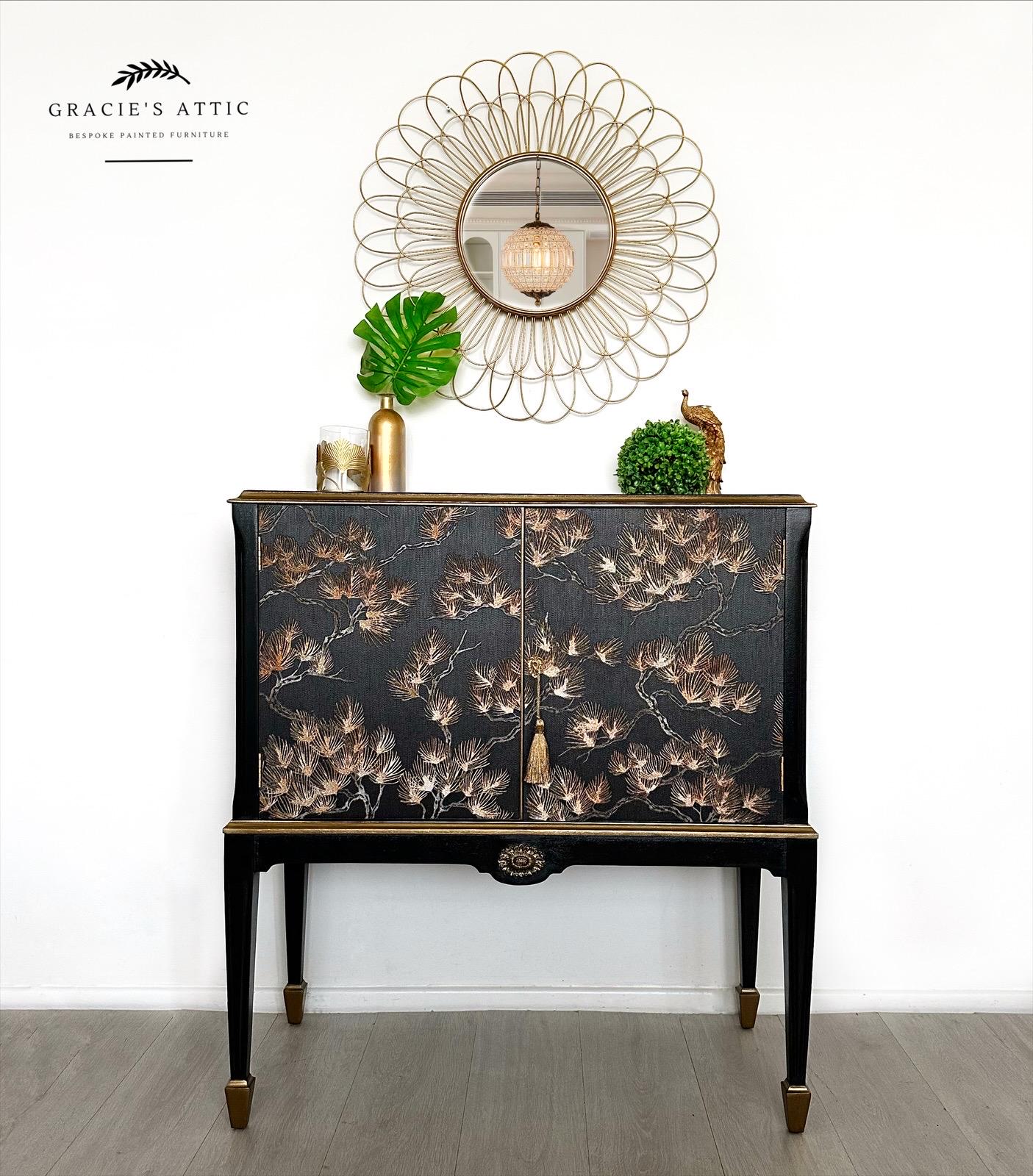 Vintage Cocktail Cabinet, Gin Cupboard, Black and Gold, drinks cabi...