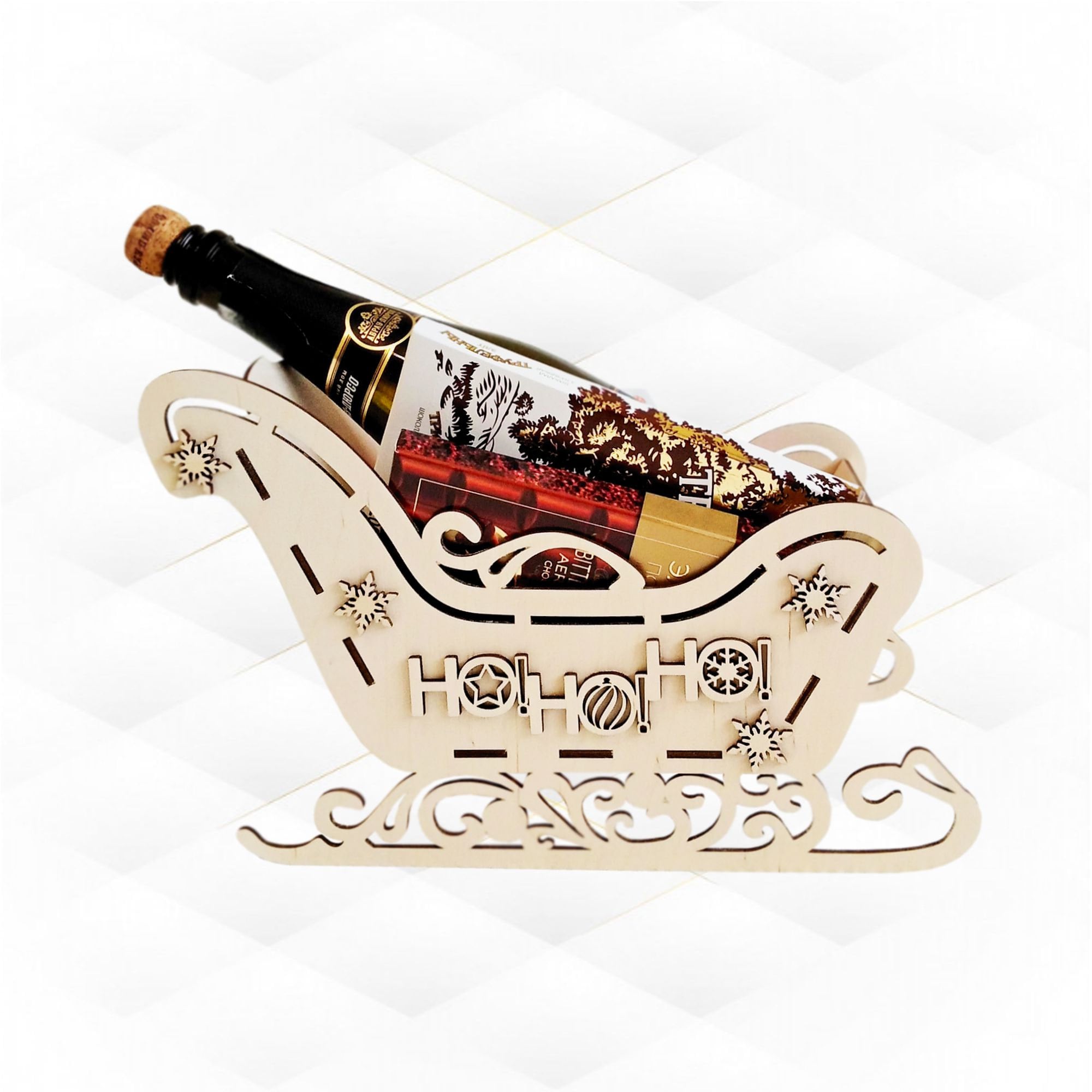 Gift Christmas sleigh, wine box holder, laser cutting design. Laser cut vector, xmas pattern, christ...