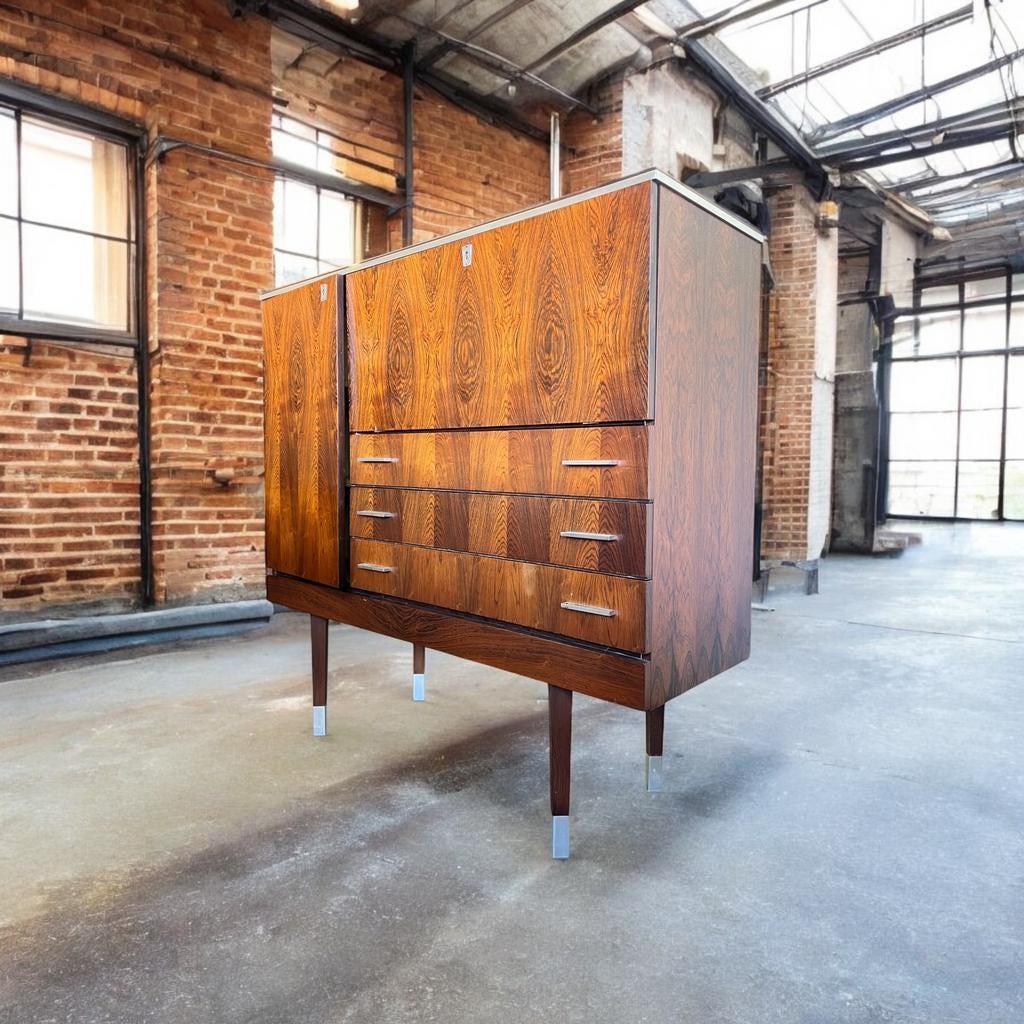 bar cabinet 123 x 43 x 122 h Vintage wooden cupboard / cupboard / bar cupboard Retro chest of drawer...