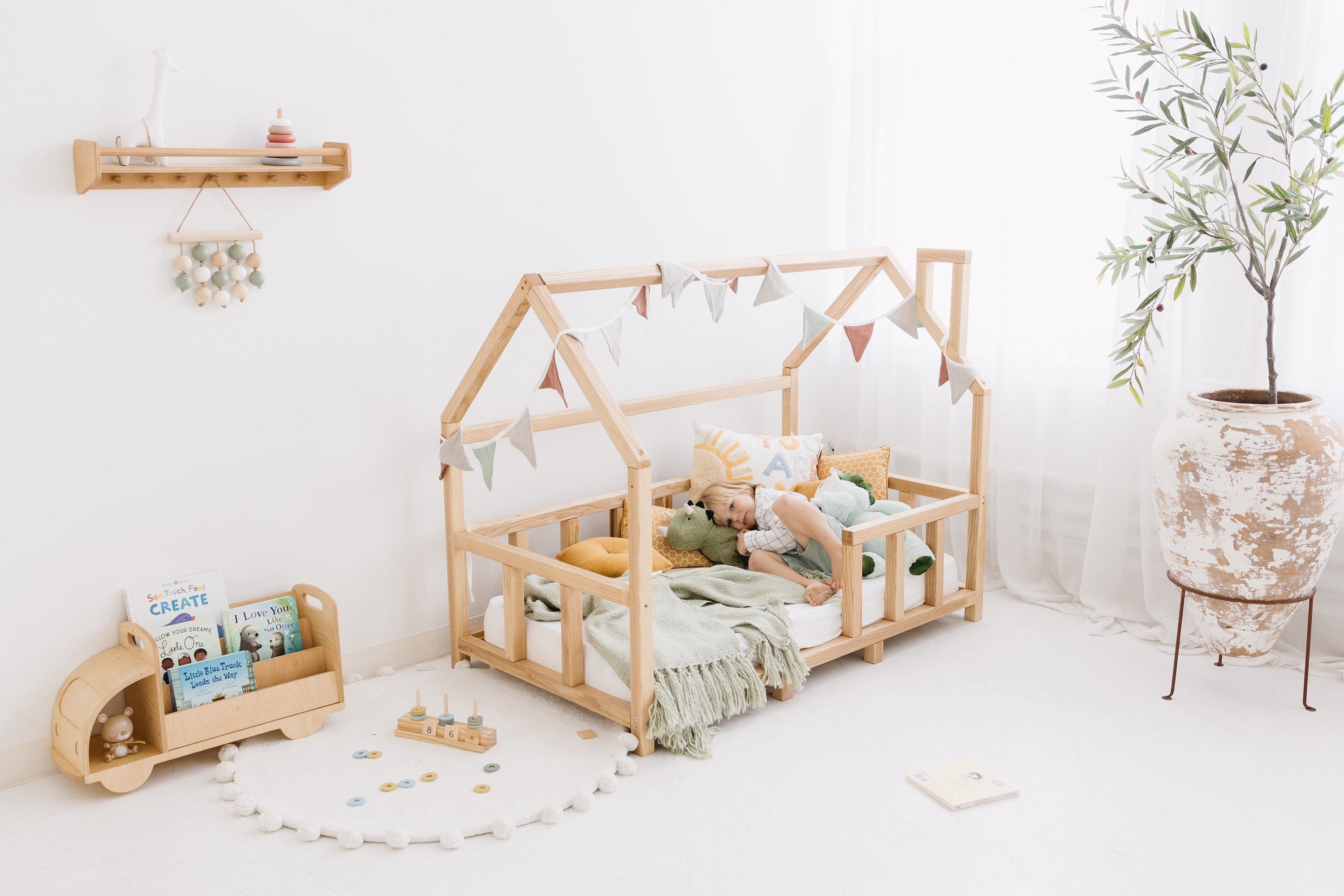 Montessori House Bed Frame with Legs and Slats, Toddler Furniture, ...