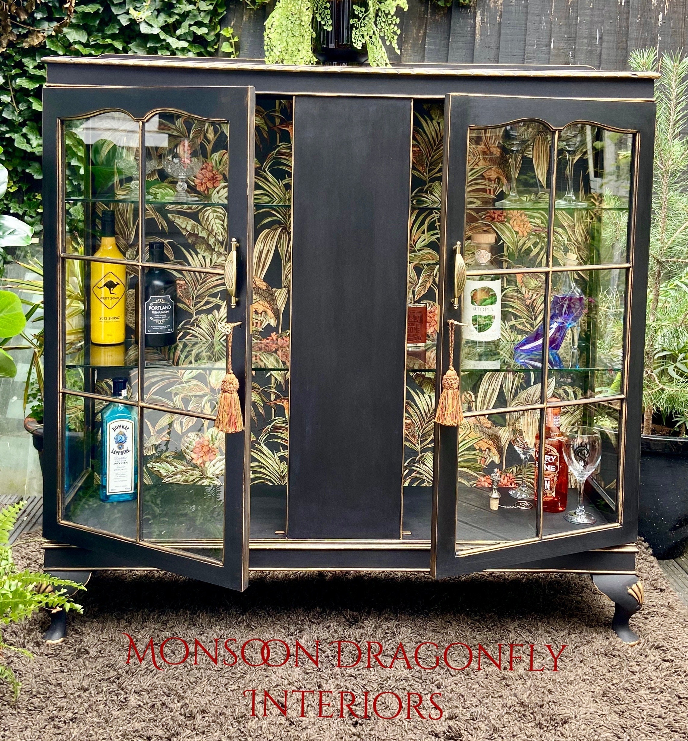 Drinks Cocktails Cabinet Bar In Annie Sloan Black with Expensive De...