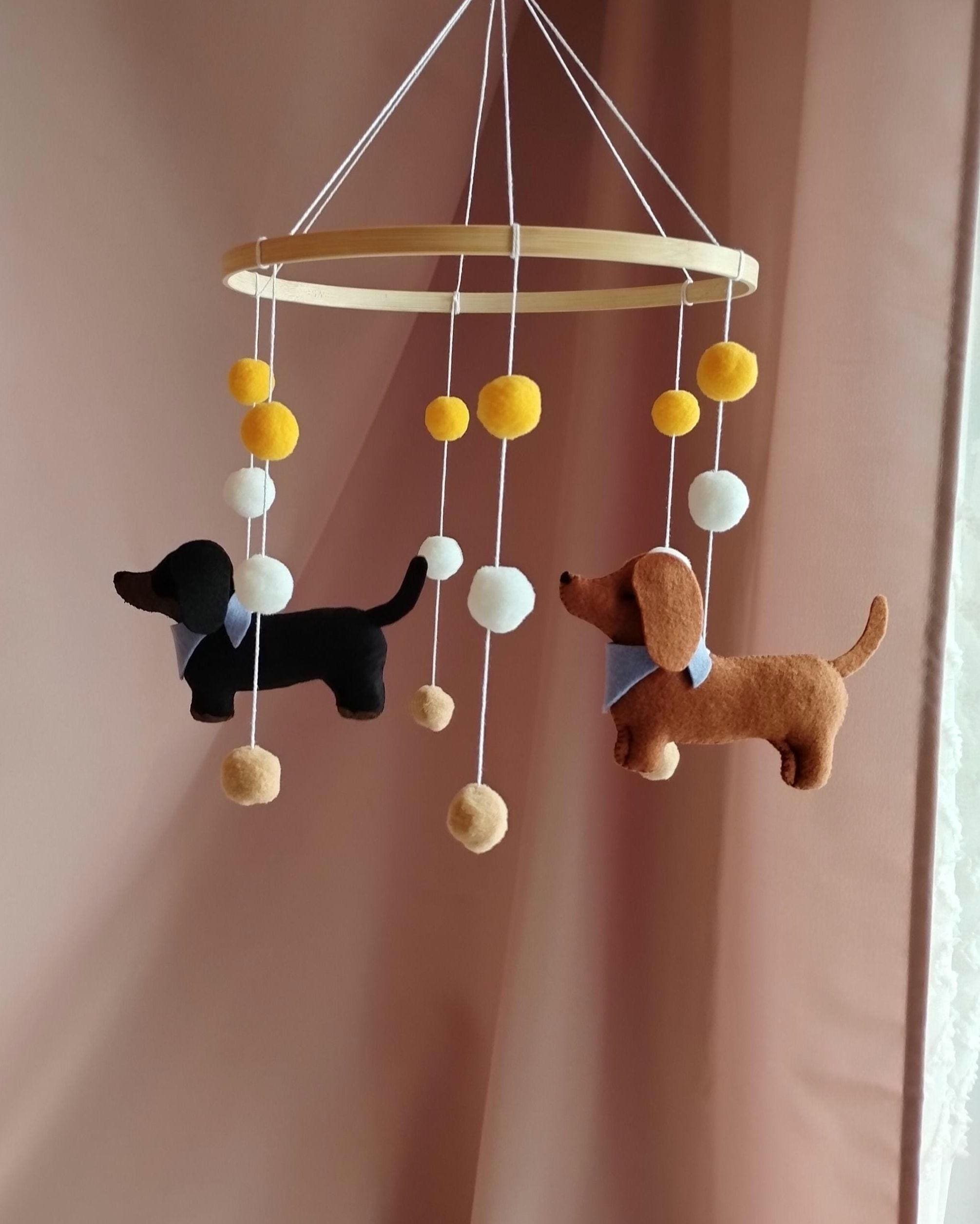This adorable mobile with 2 Dachshunds is a beautiful decoration for baby nursery room. Carefully ha...