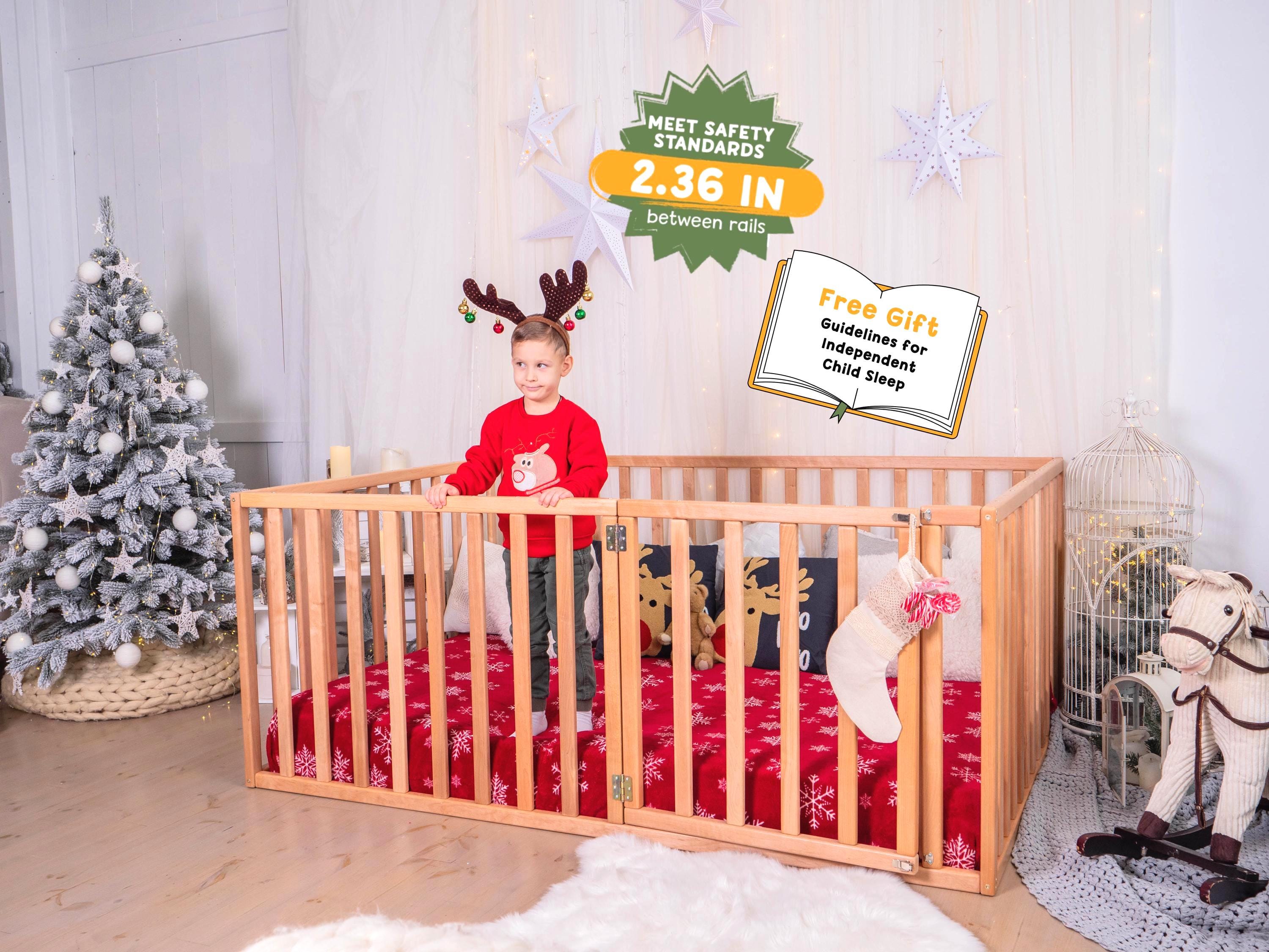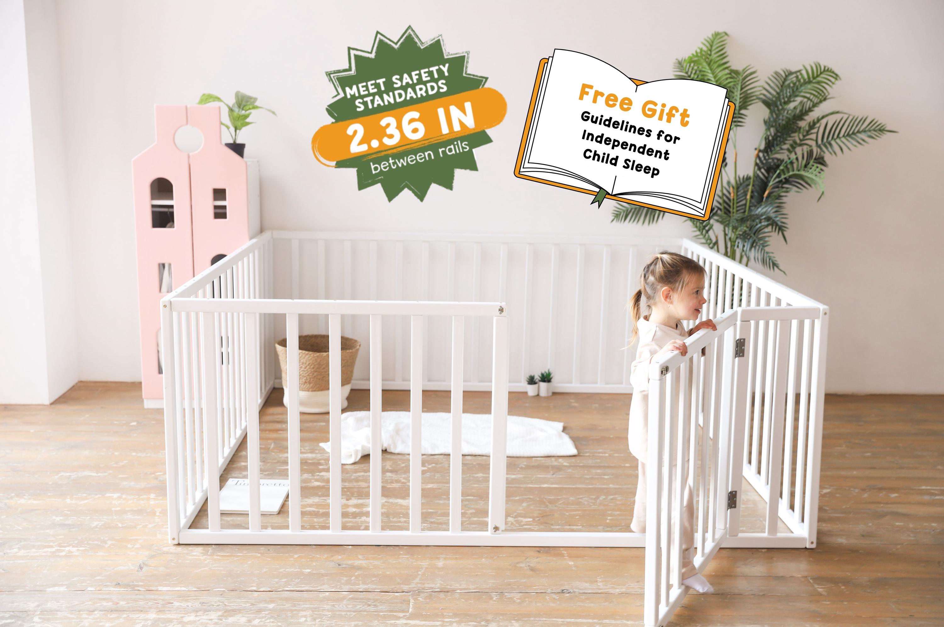 Toddler Floor Bed with High Rails, Playpen Bed with Extra Protectio...