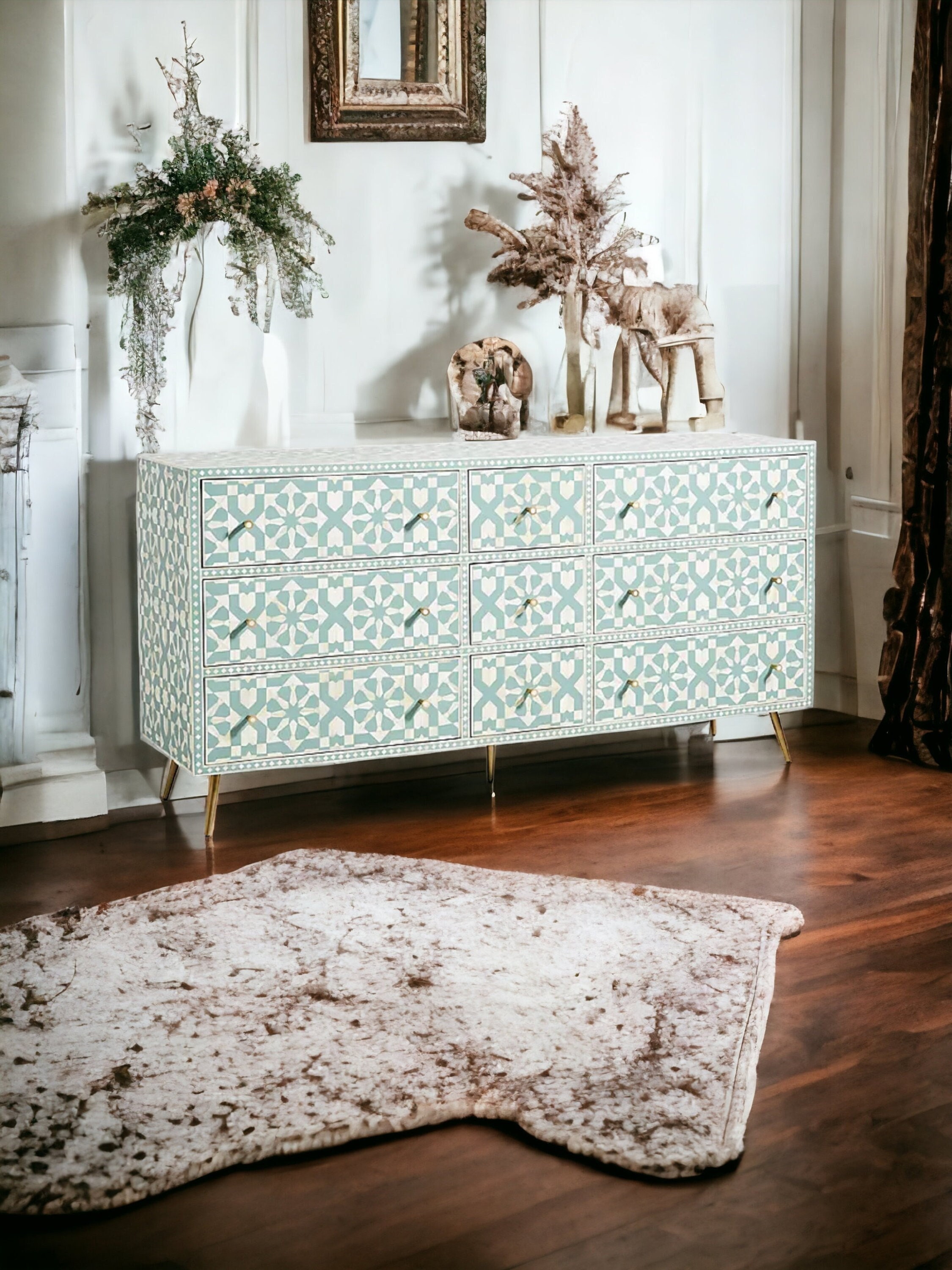 Bone Moroccan Inlay 9 Drawers Chest of Drawers, Bone Inlay Drawers ...