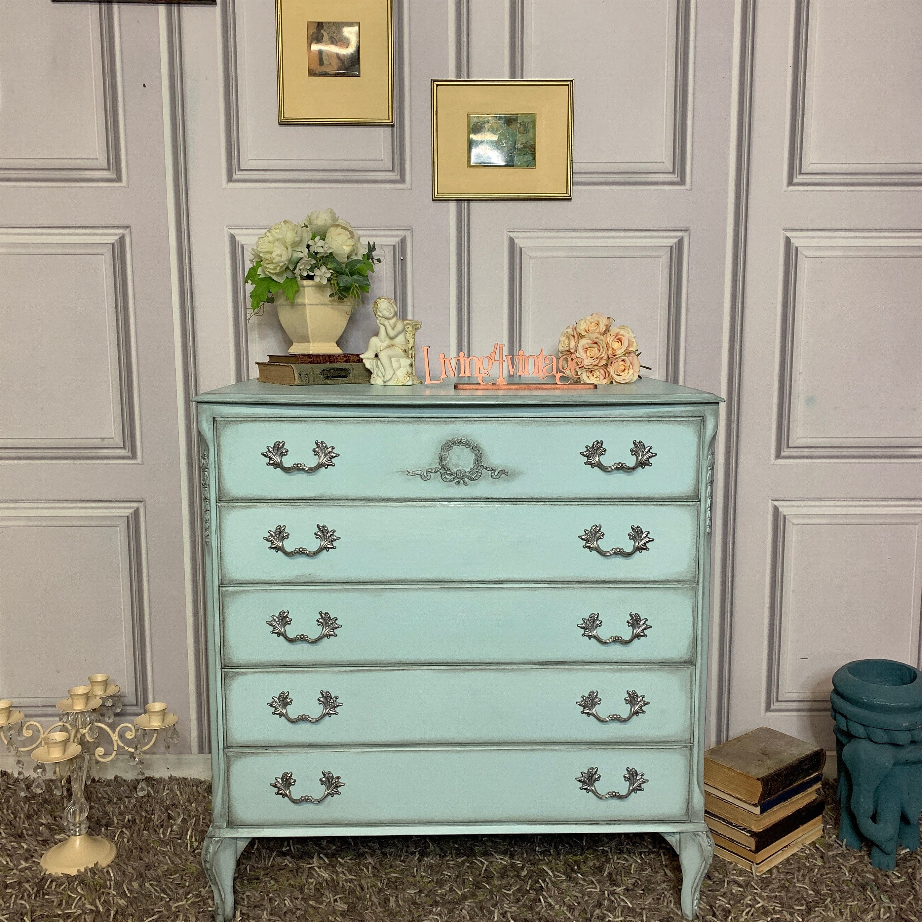 French Louis Style Chest of Drawers: Duck Egg Blue Painted Commissi...