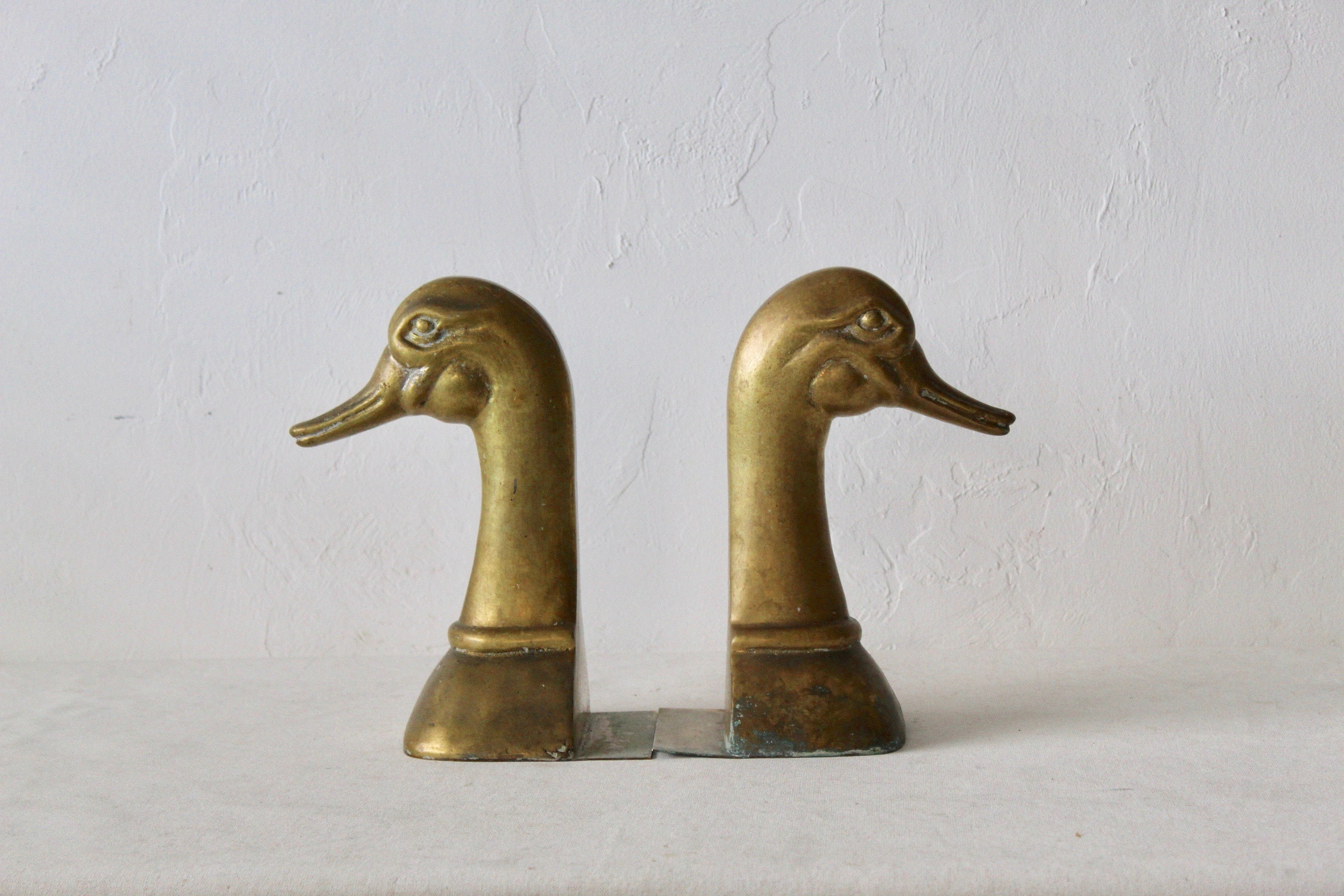 "Sarreid Spanish Extra large Brass Duck Head Bookends-a pair Large and heavy, patina and some o...
