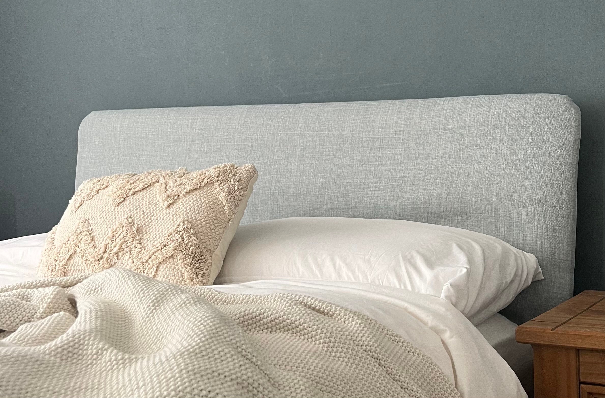 Headboard Cover - Light Duck Egg Blue - Linen Style. Custom made to...
