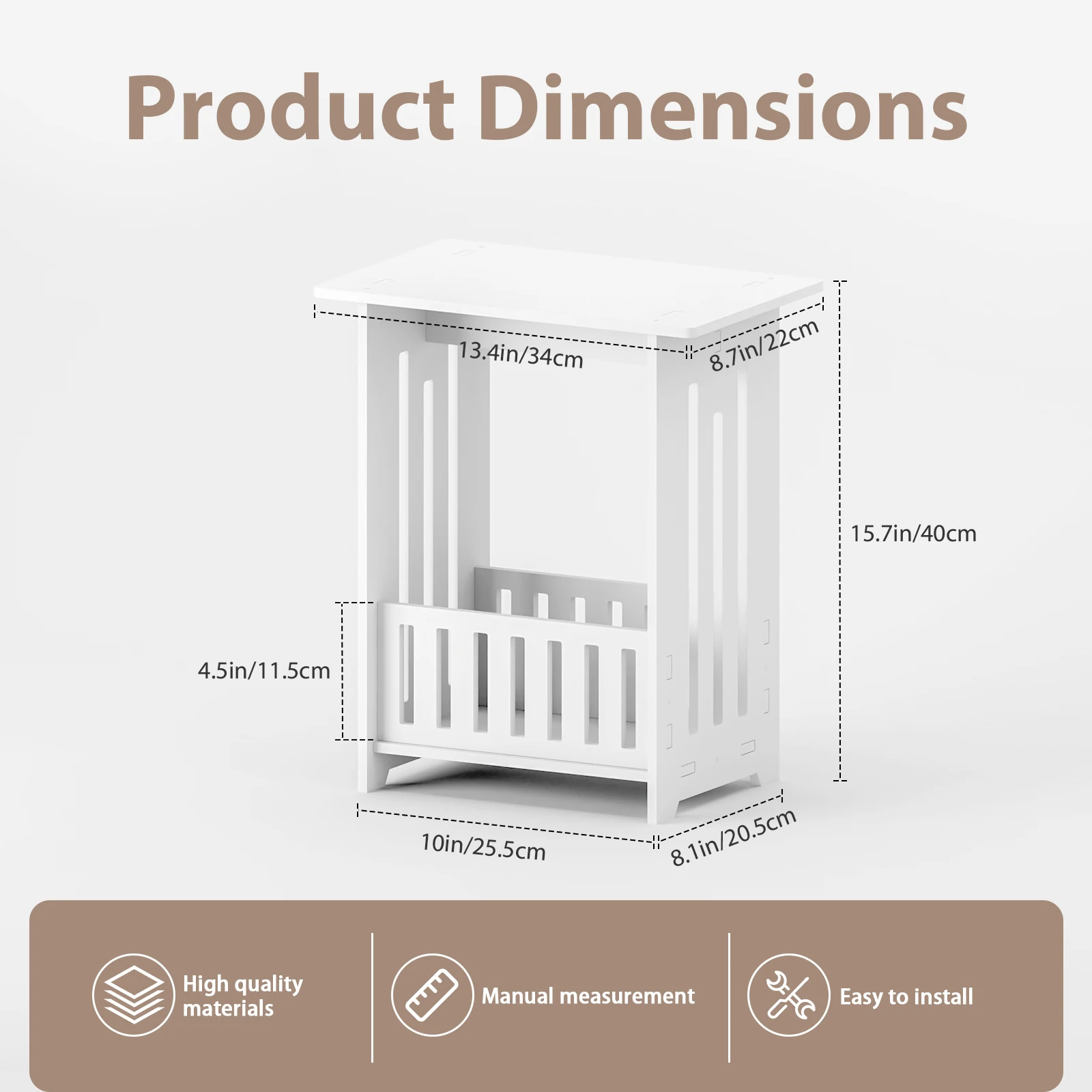 A narrow bedside floor organizer with a drawer, perfect for little space. It's compact design fits s...