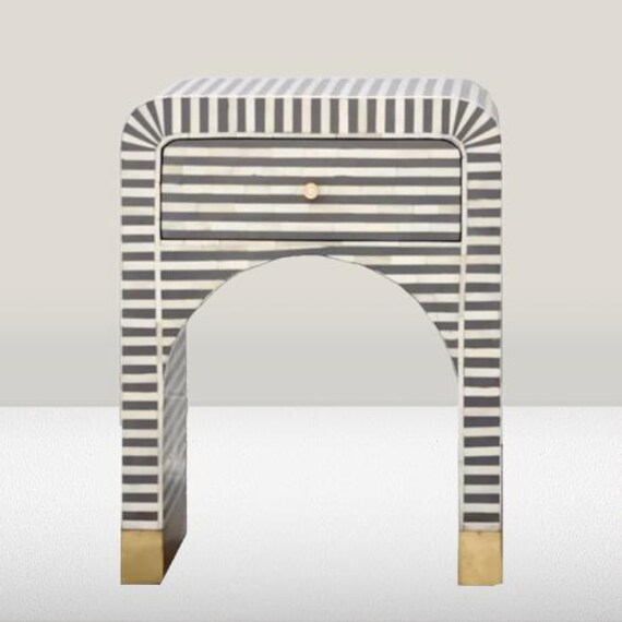 Bone Inlay Side Table - Handmade Floral Inlay End Table | Boho Acce...
