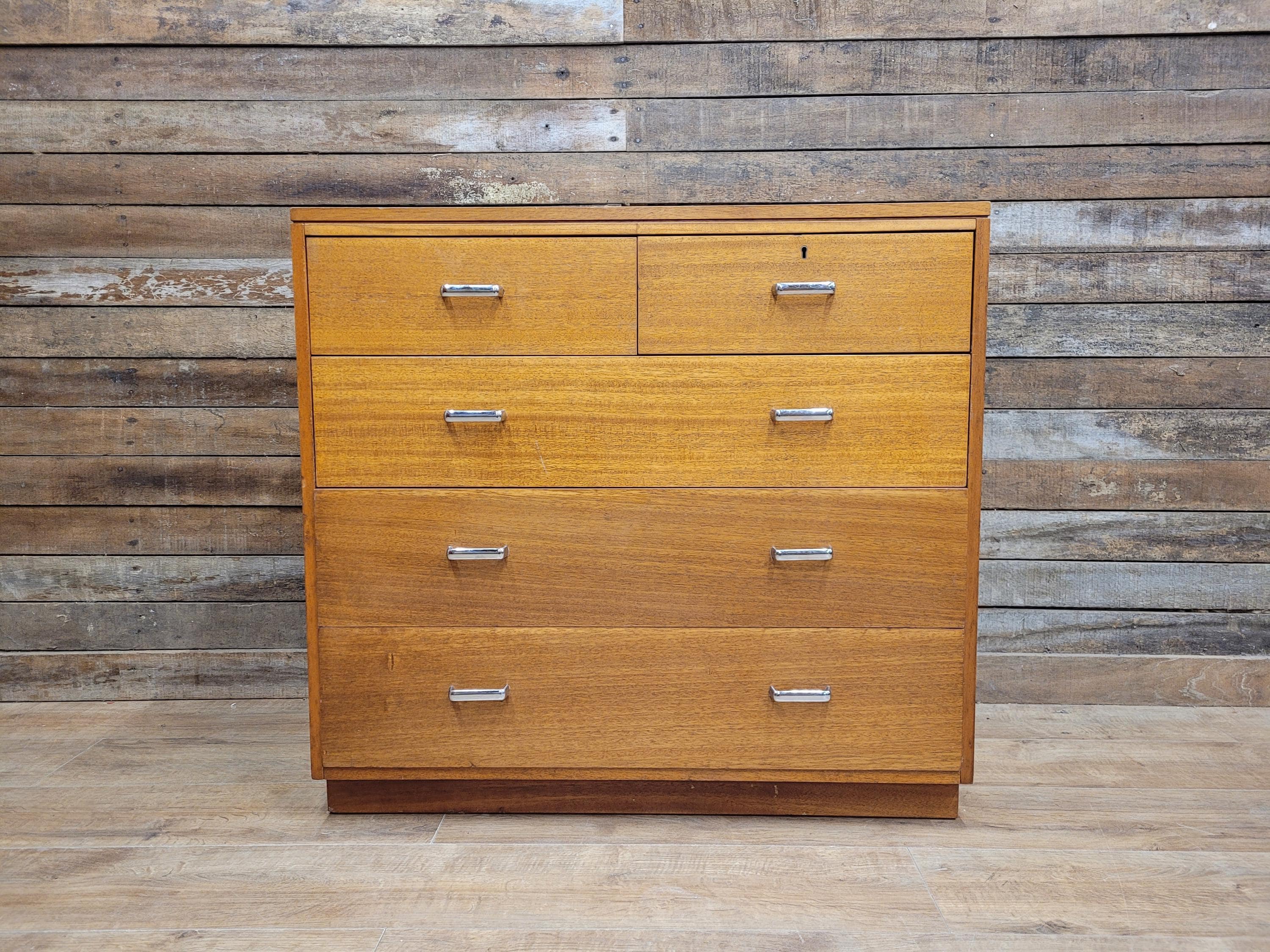 Mid Century M.O.D Industrial Teak Chest of Drawers 2 Over 3 Ex Mili...