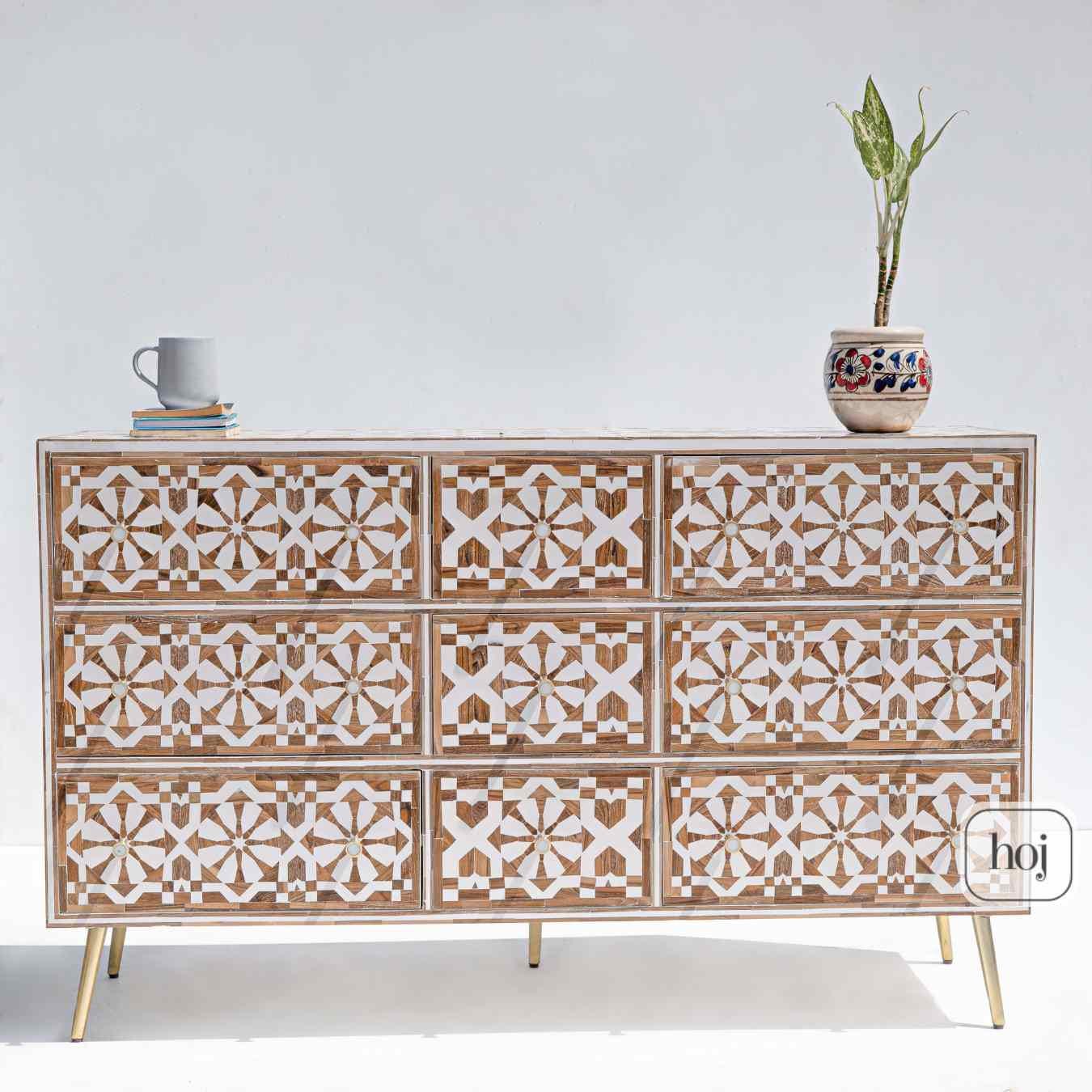 Bring a touch of freshness and timeless elegance to your home with this Teakwood Inlay Dresser, beau...