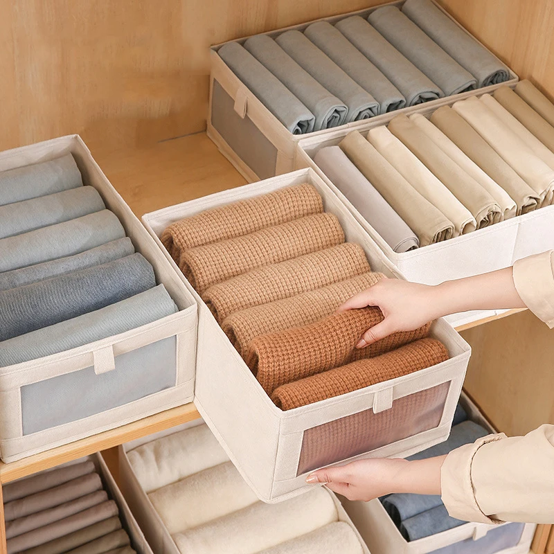 Fabric Window Cotton Linen Storage Box Wardrobe Storage And Arrangement Large Clothing Storage Box T...