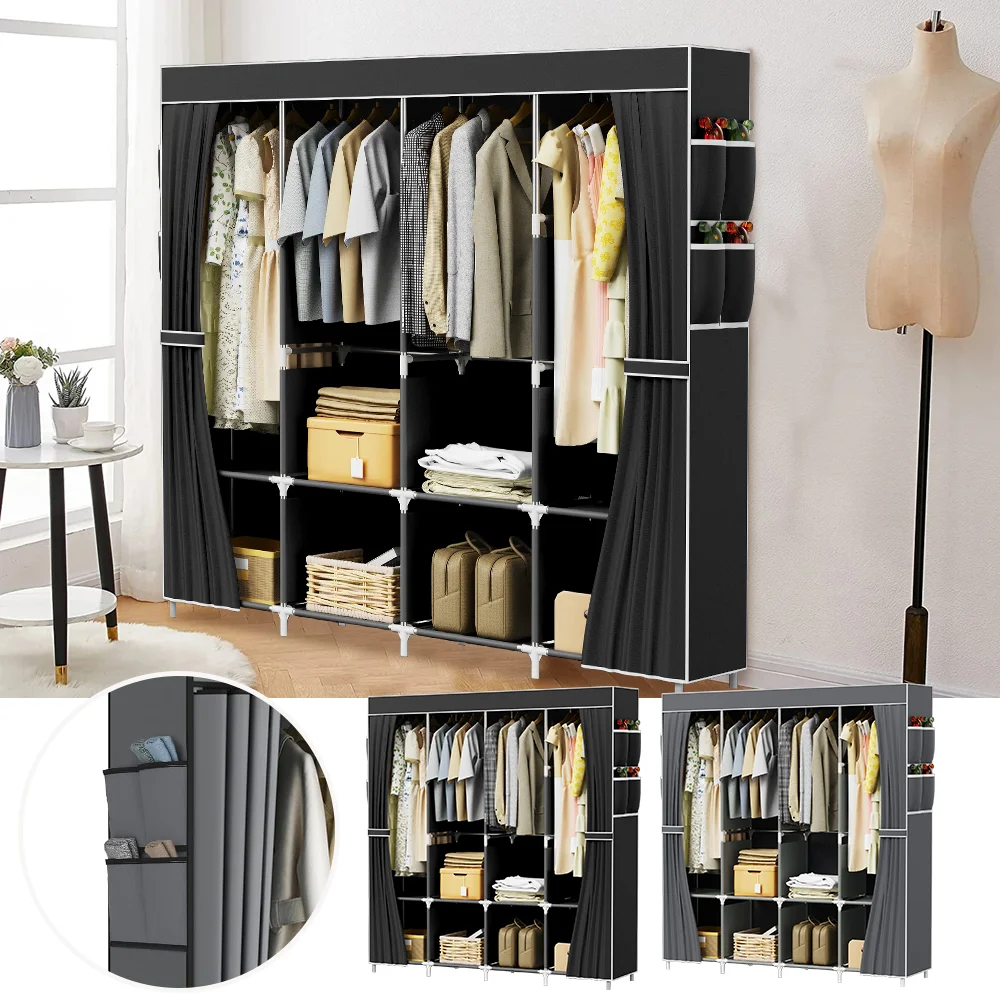 Portable Storage Shelves with side pockets Clothes Organizer Non-Woven Fabric Storage Wardrobe Cloth...