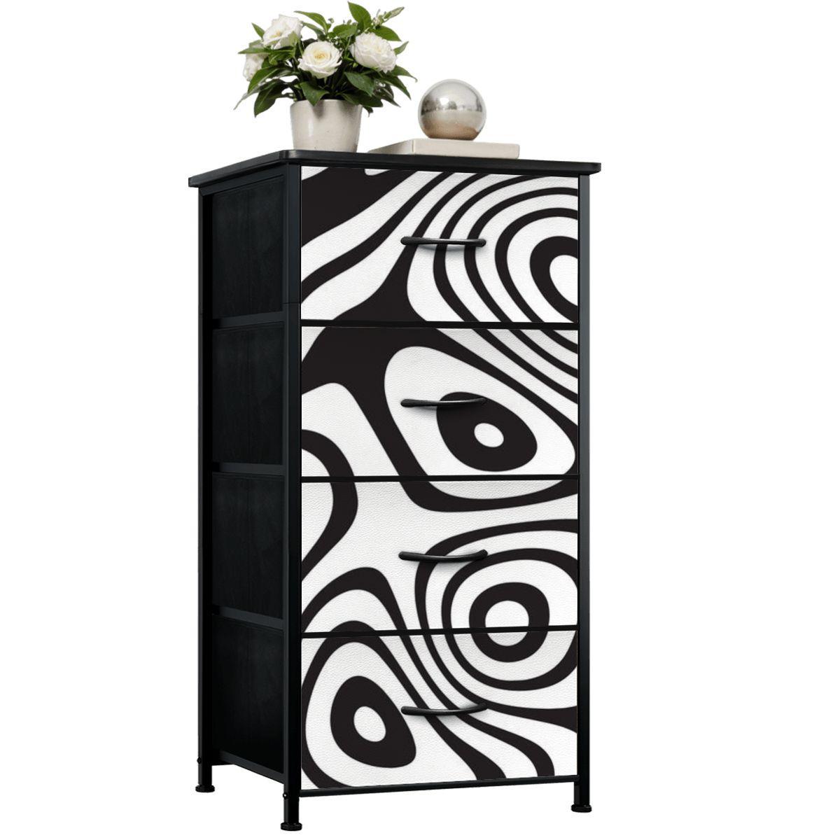 Tall 4-Drawer Retro Dresser: Black & White Fabric Storage Cabin...