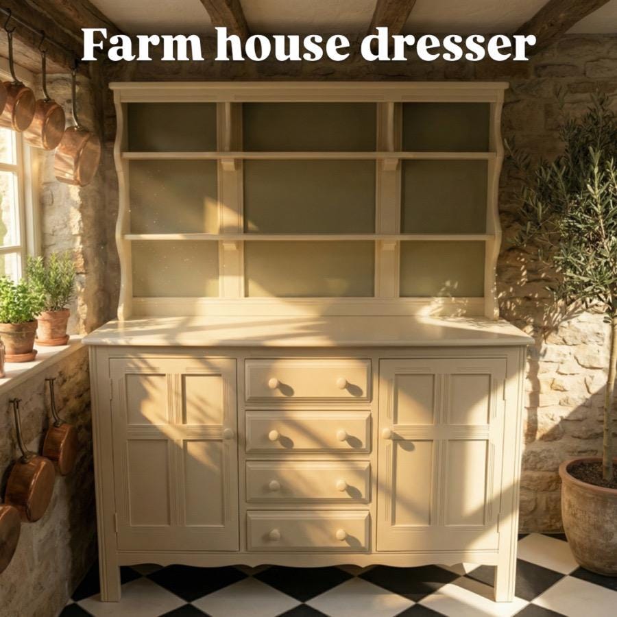 "A beautiful hand painted Cream and Sage by Farrow and ball. This useful kitchen piece would ad...