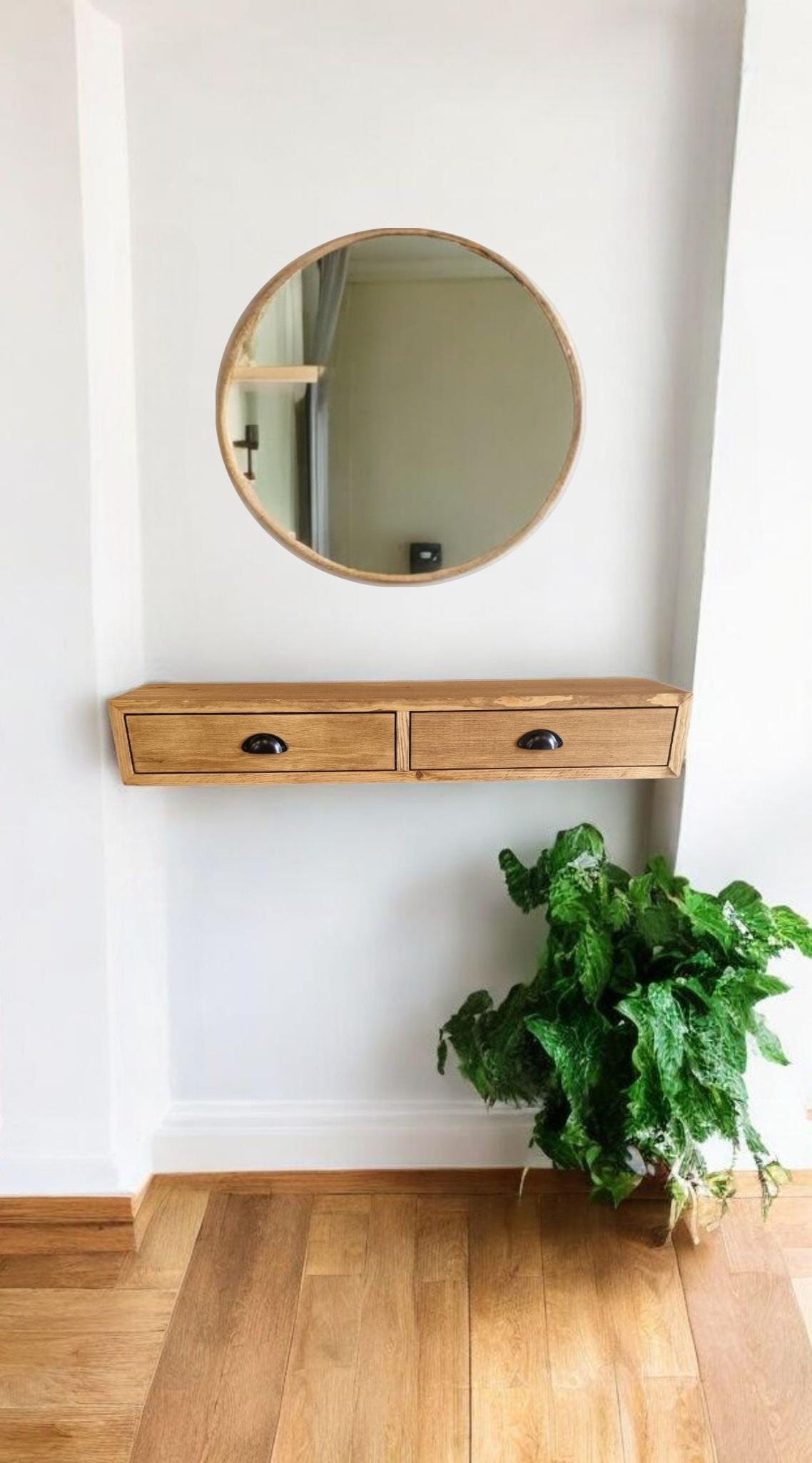 Handmade floating console table with drawers made from solid pine wood, finished with dark oak wax. ...