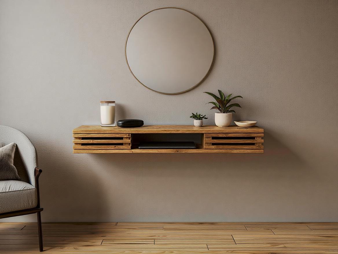 Floating wall console table made from recycled wood | Handmade entr...