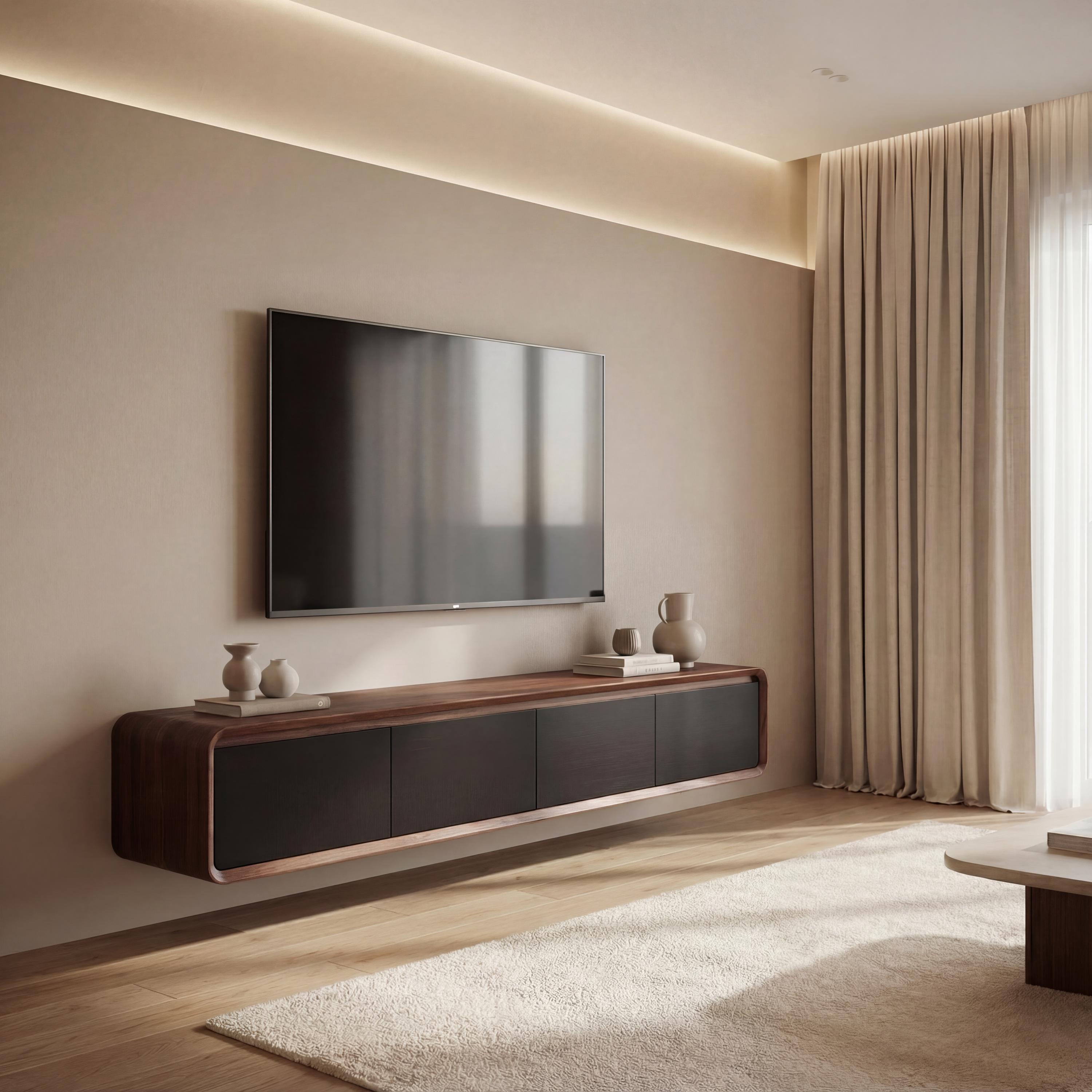 Floating Wood Sideboard, Wall Mounted Media Console, Modern Minimal...