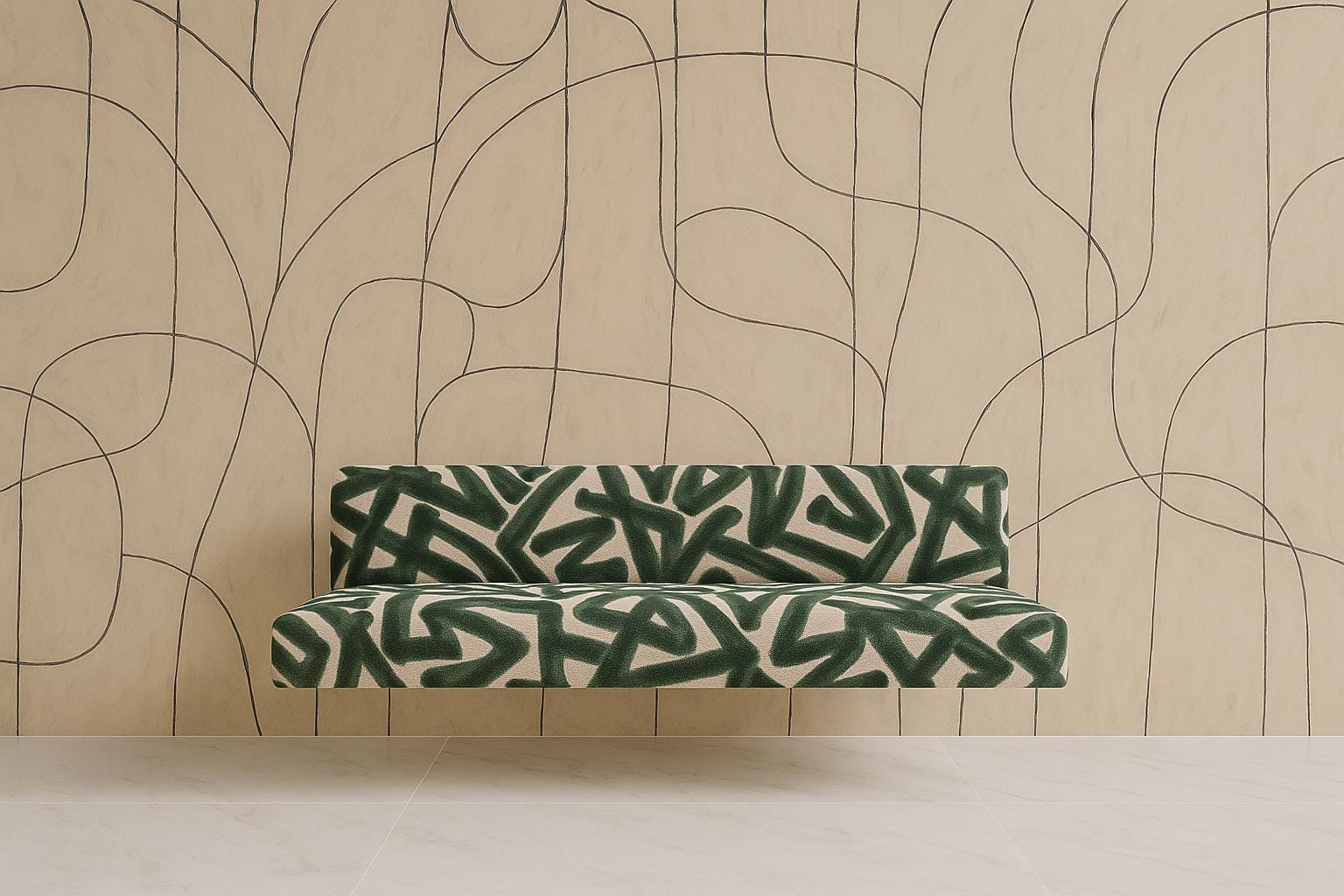 Custom Velvet Floating Bench Wall Mounted Upholstered Seating Moder...