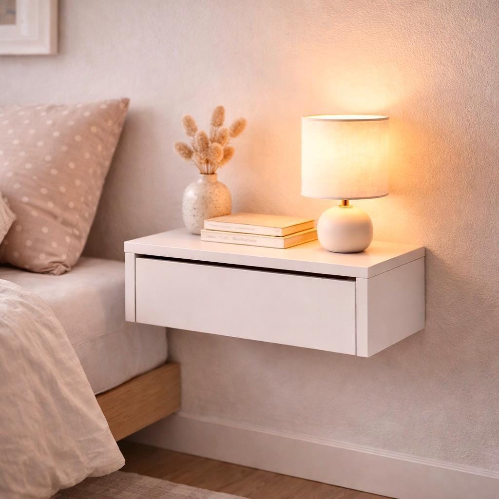 floating nightstand with drawer, bed side table, floating night stand, floating bedside table, low b...