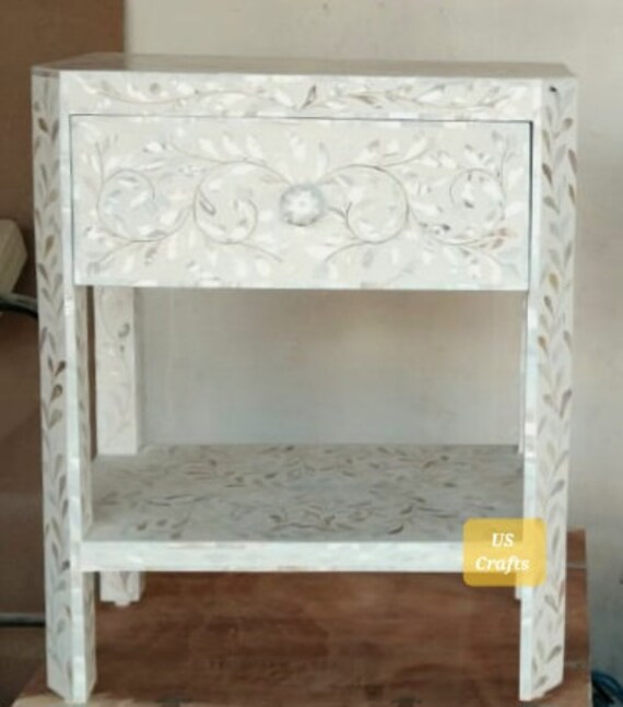 Mother of pearl inlay Bedside with 1 Drawer 1 shelf,Mother of pearl...
