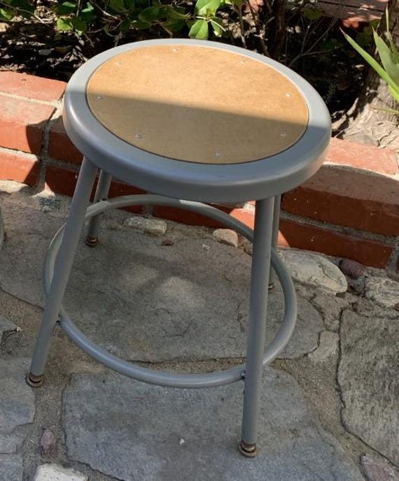 "Industrial metal drafting and/or bar stool. Features steel tubing with round masonite board, O...