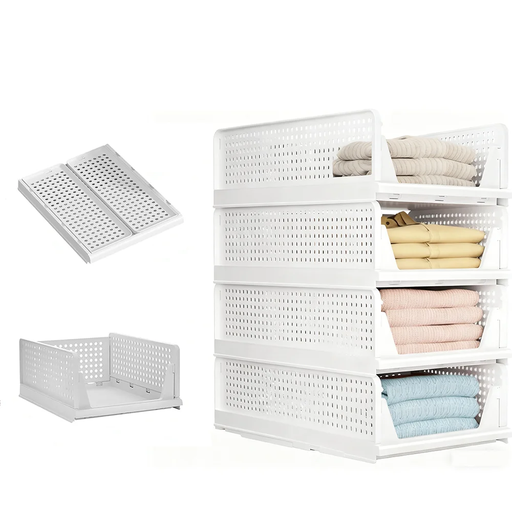 1pcs Foldable Wardrobe Storage Organizers Stackable Plastic Cupboard Baskets Clothes Storage Boxes D...