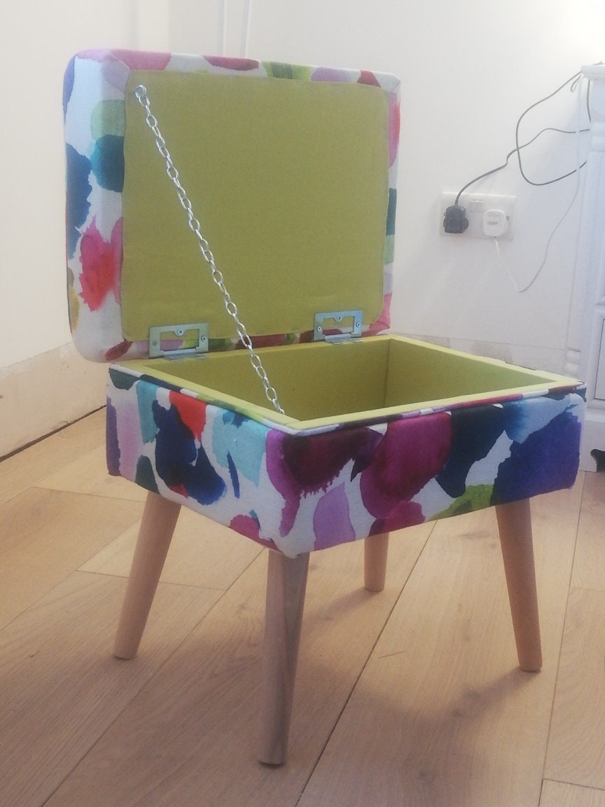 "Funky Footstool Storage Ottoman Handmade and Handcrafted Featuring Bluebellgrays designer fabr...