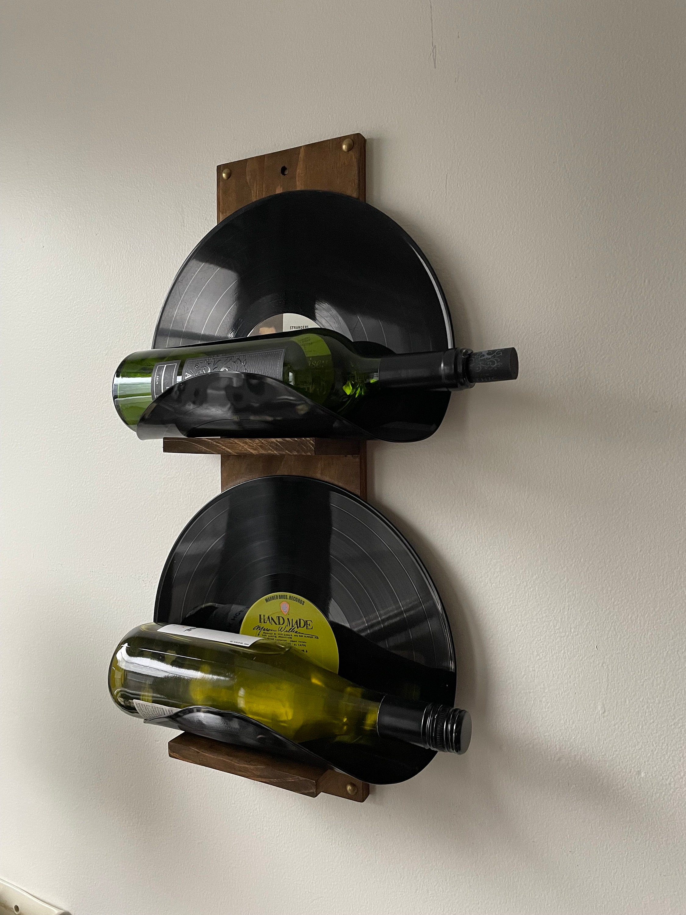 2 bottle vinyl record wine rack, vinyl bottle holder, wall mounted ...
