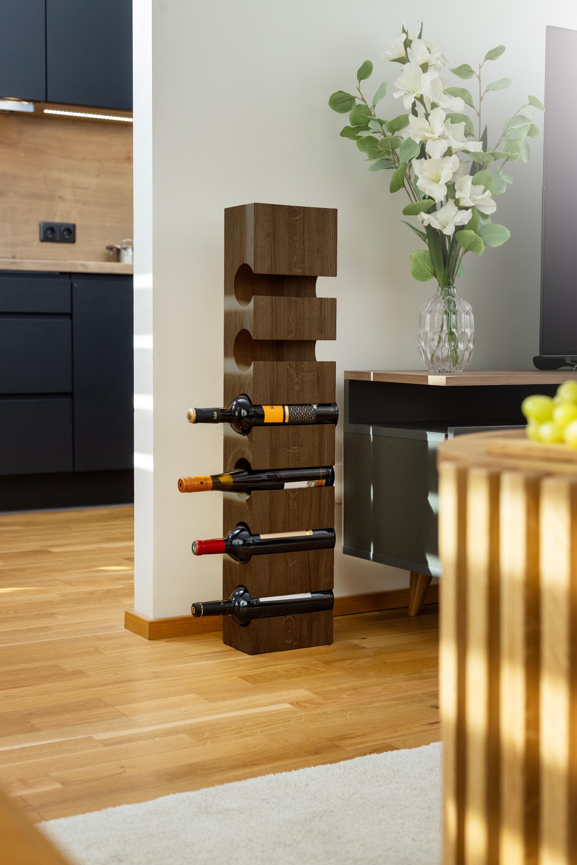 Wood Wine Rack 5 Bottles - Solid Wood Wine Holder, Modern Standing ...