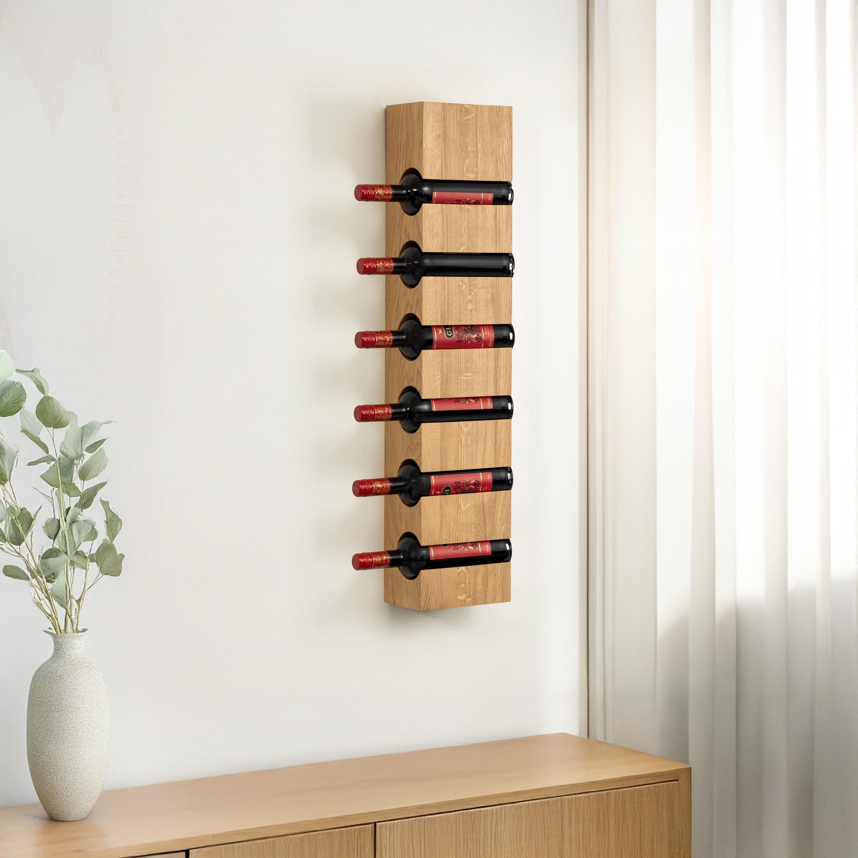Solid Oak Wall Mounted Wine Rack, 6 Bottle Wine Rack Free Standing